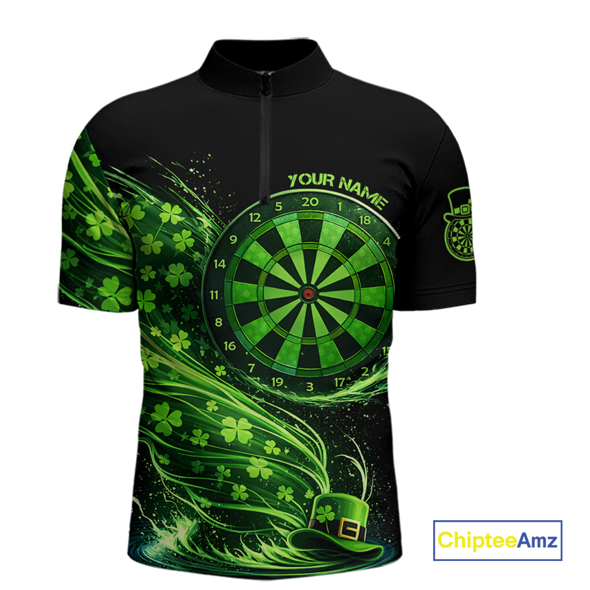 Funny Shamrock Tornado Dartboard Men Darts Quarter-Zip Shirt Custom St Patrick's Day Darts Team Jersey NYN2532