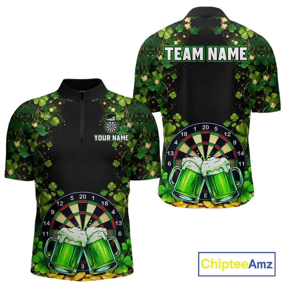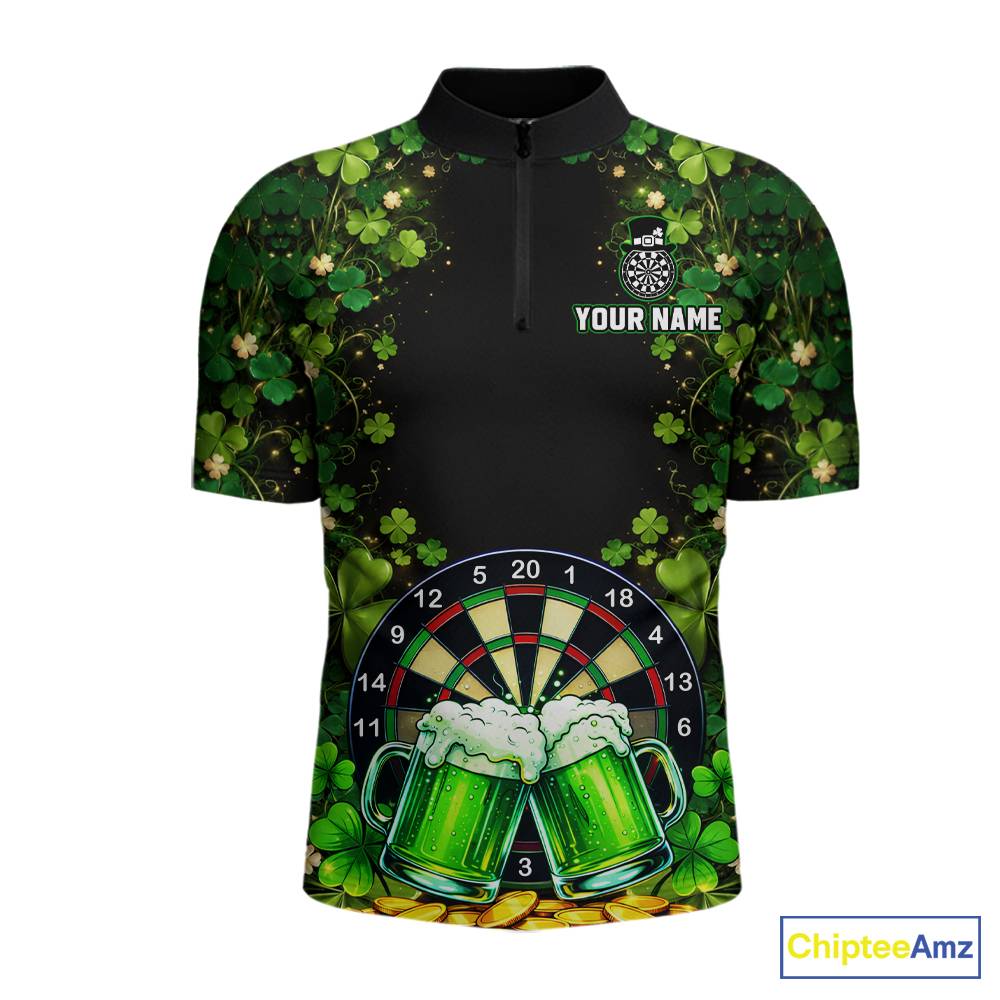 Cheer Beer & Play Dartboard Shamrock Men Darts Quarter-Zip Shirt Custom St Patrick's Day Darts Jersey NYN2534