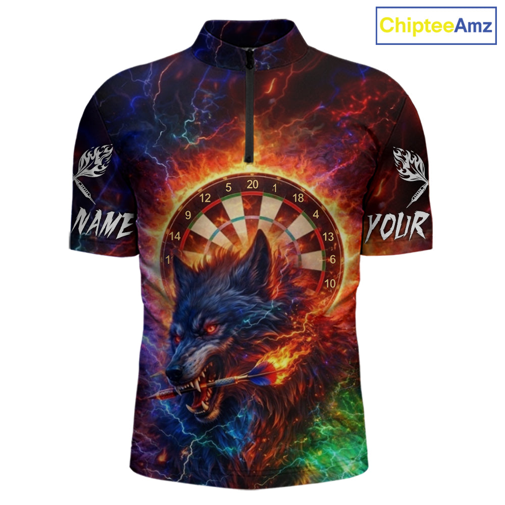 Colorful Lightning Funny Wolf Flame Dartboard Men Darts 1/4-Zip Shirt Custom Outfits Dart Jerseys NYN2540