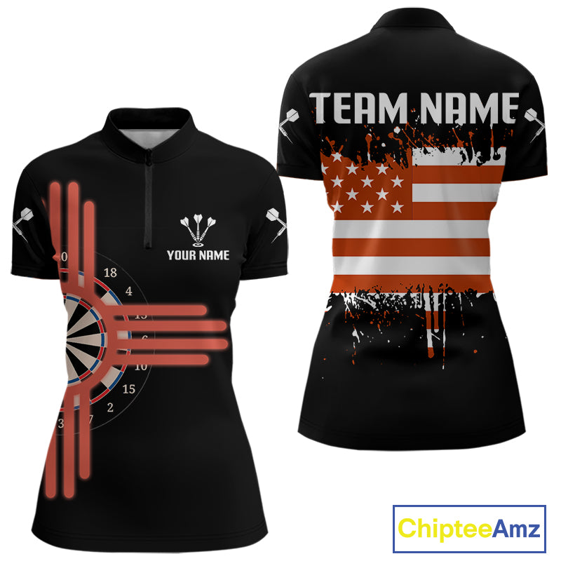 Grunge US Flag & Dartboard Custom Darts Quarter-Zip Shirt For Women - Darts Team Jersey NYN0762
