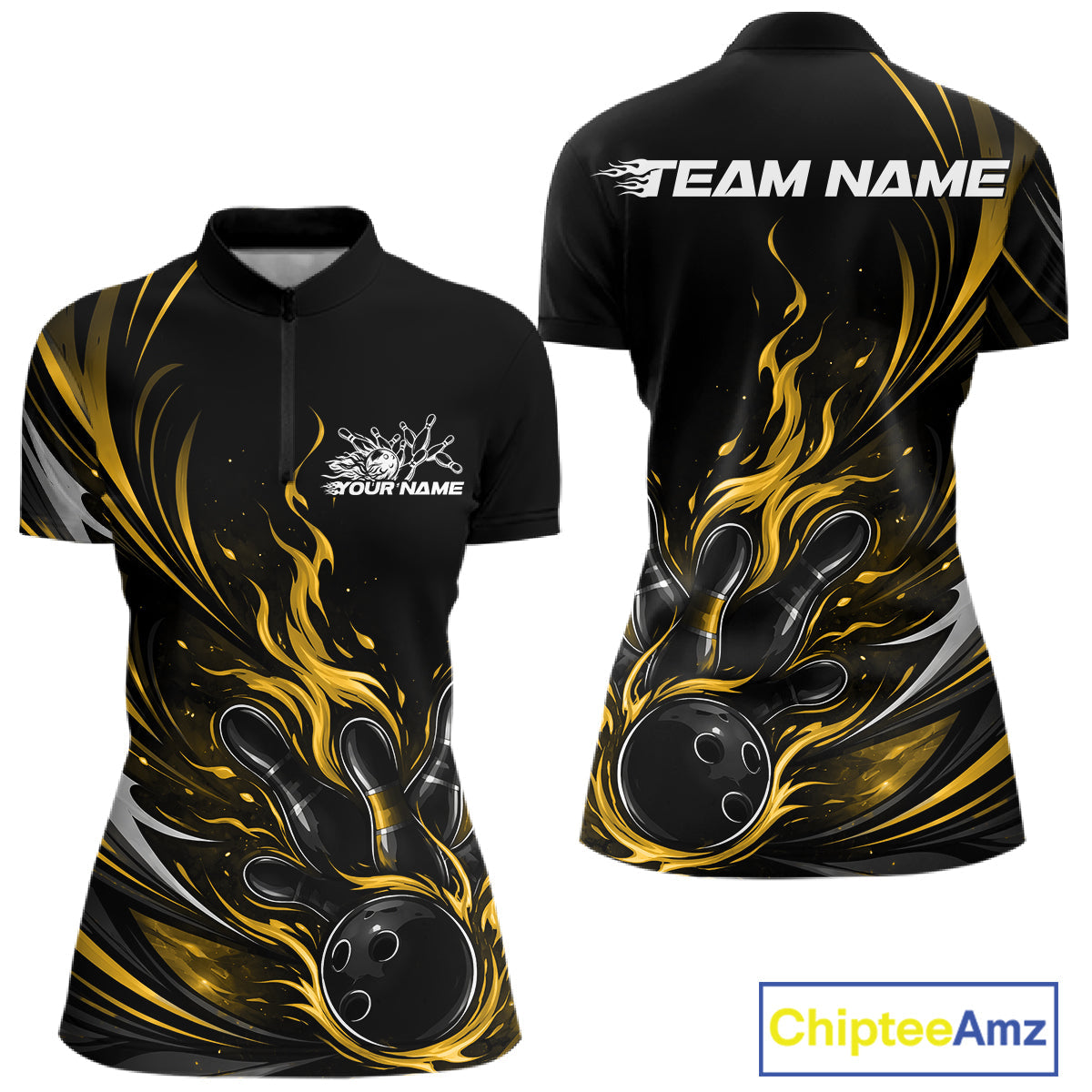 Custom Black And Yellow Fire Flame Bowling Women Jerseys, Bowling League Shirt IPHW10310