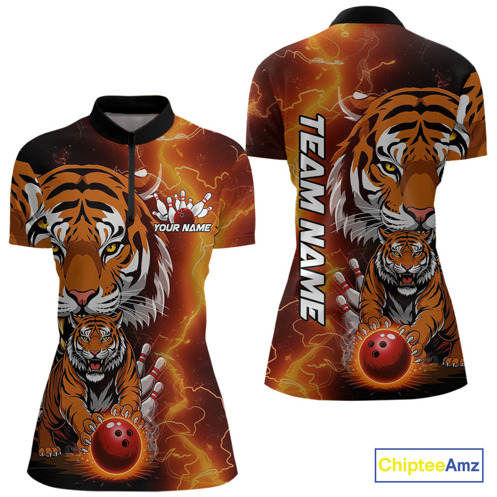 Custom Thunder Lightning Tiger Bowling Quarter-Zip Shirts For Women, Bowling Team Outfit IPHW9093