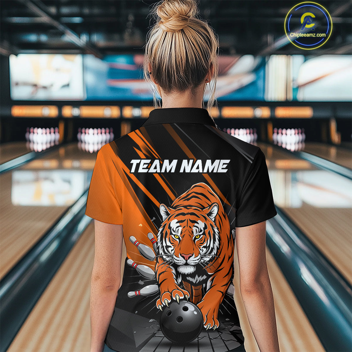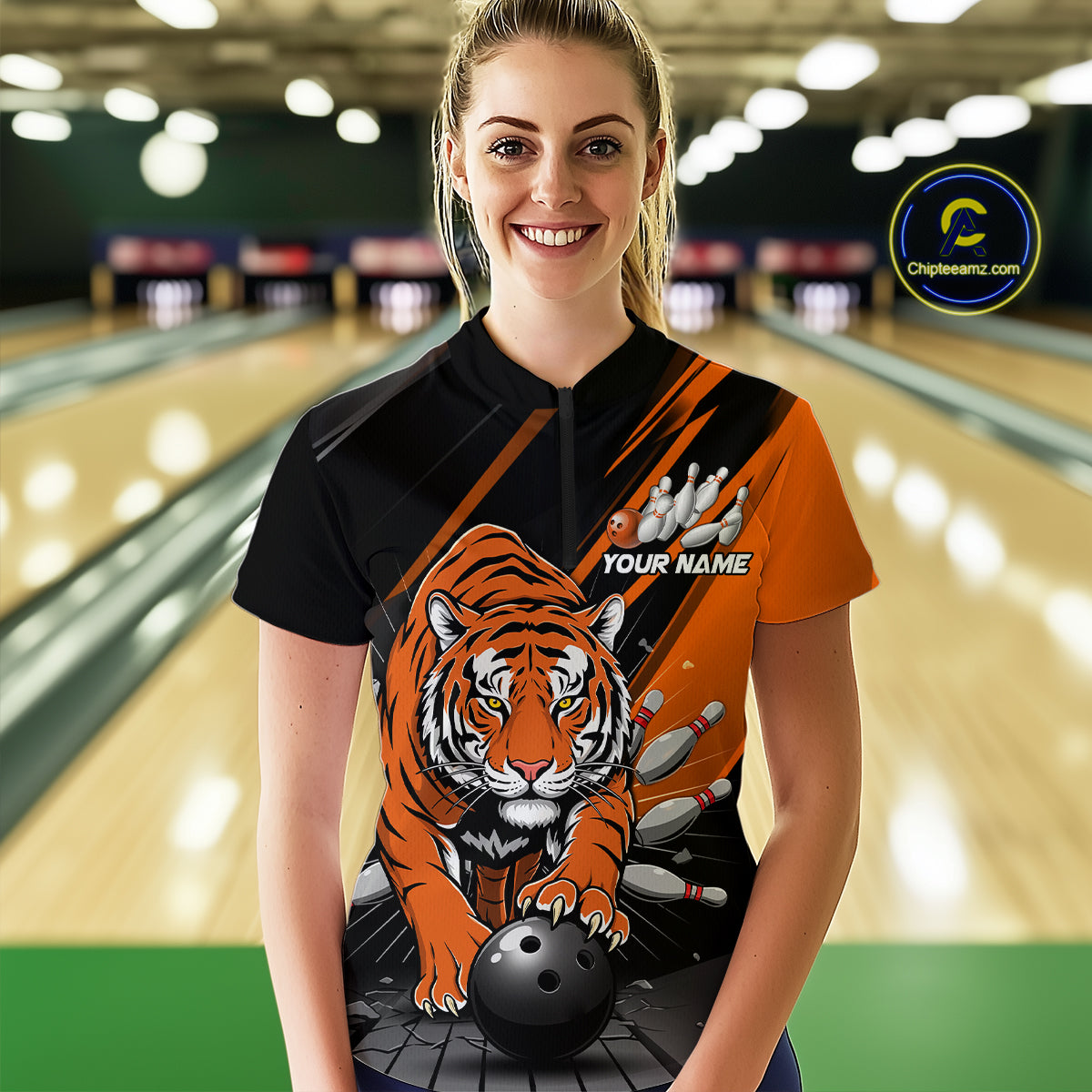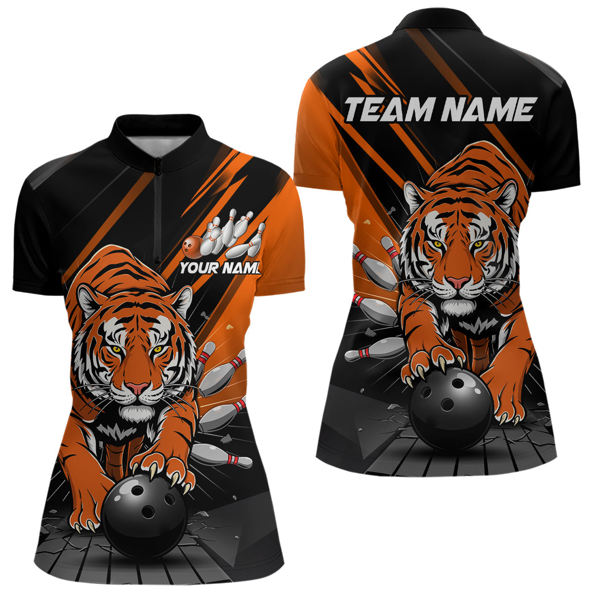 Custom Tiger Bowling Team Quarter-Zip Shirts For Women, Bowling Tournament Outfit IPHW9096