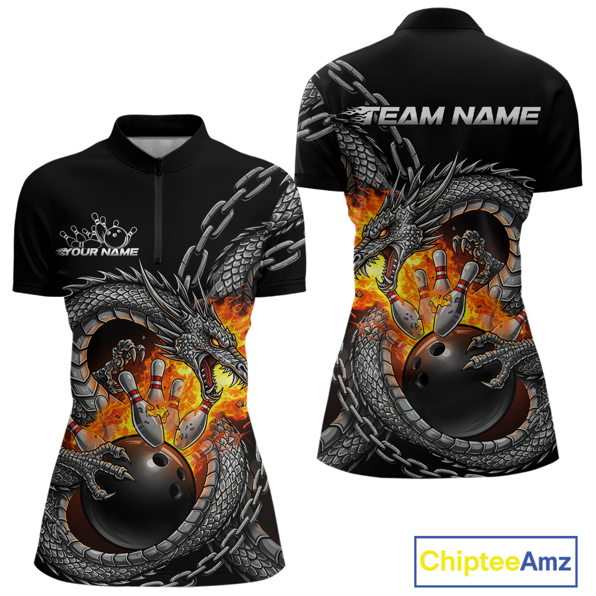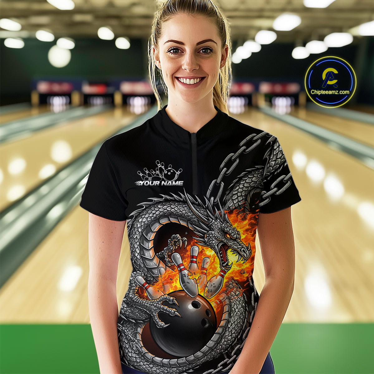 Custom Metal Chain Flame Dragon Bowling Quarter-Zip Shirts For Women, Bowlin Team Shirt IPHW9097