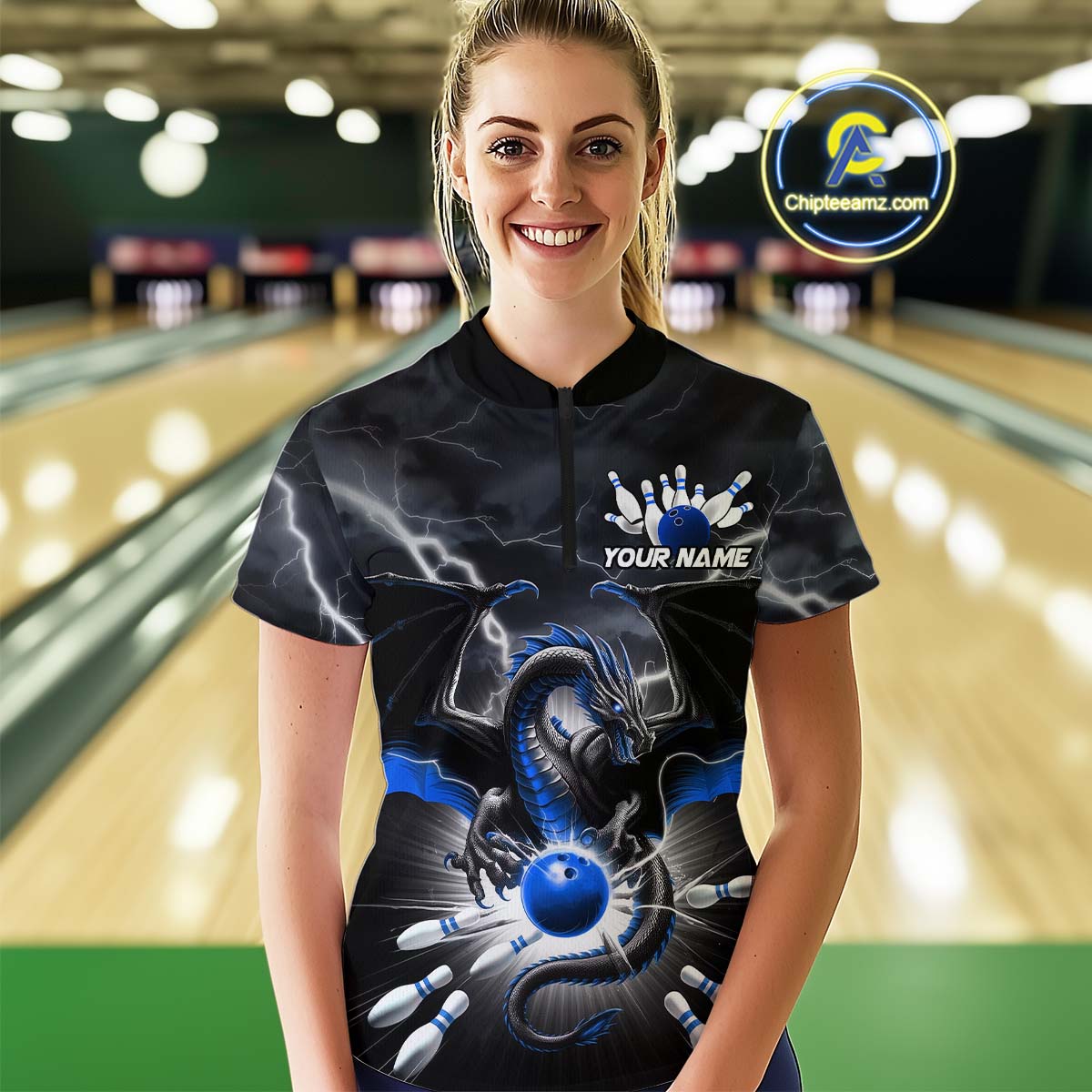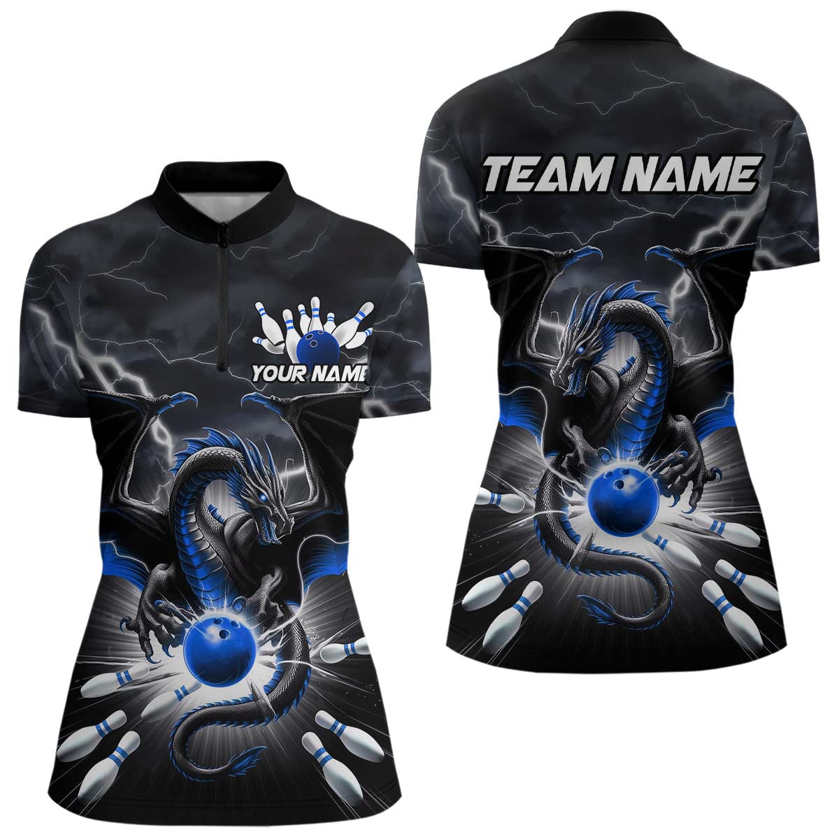 Custom Thunder Lightning Blue Dragon Bowling Team Women Quarter-Zip Shirt, Bowling Jersey IPHW9111