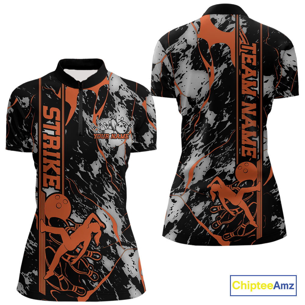 Custom Orange And Gray Camo Strike Bowling Women Quarter-Zip Team Shirts, Bowling Jersey IPHW9244