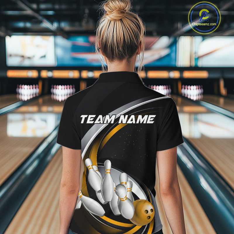 Custom Black Yellow Bowling Team Jerseys, Bowler Uniform Bowling Women Quarter-Zip Shirts IPHW9278