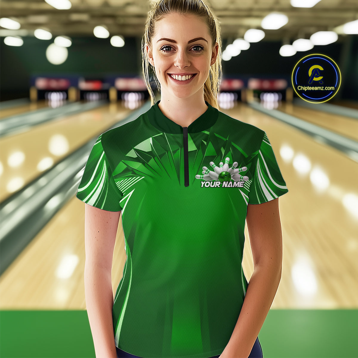 Custom Green Bowling Tournament Bowling Women Quarter-Zip Shirts With Team Name IPHW9281