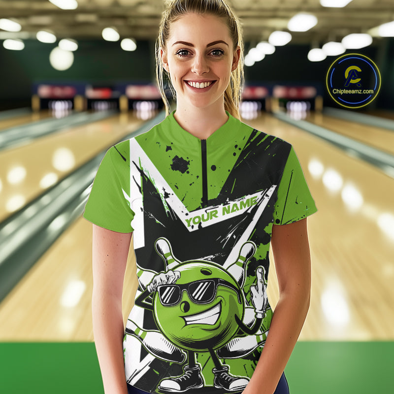 Custom Black And Green Star Funny Bowling Women Quarter-Zip Shirt, Bowling Team Shirt IPHW9360