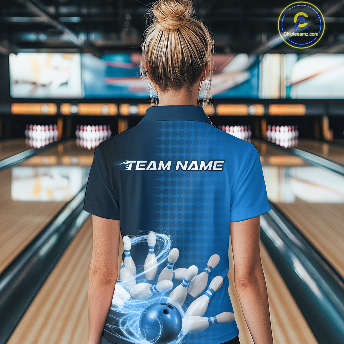 Custom Blue Flame Bowling Women Quarter-Zip Shirts, Bowling Tournament Team Shirt IPHW9407