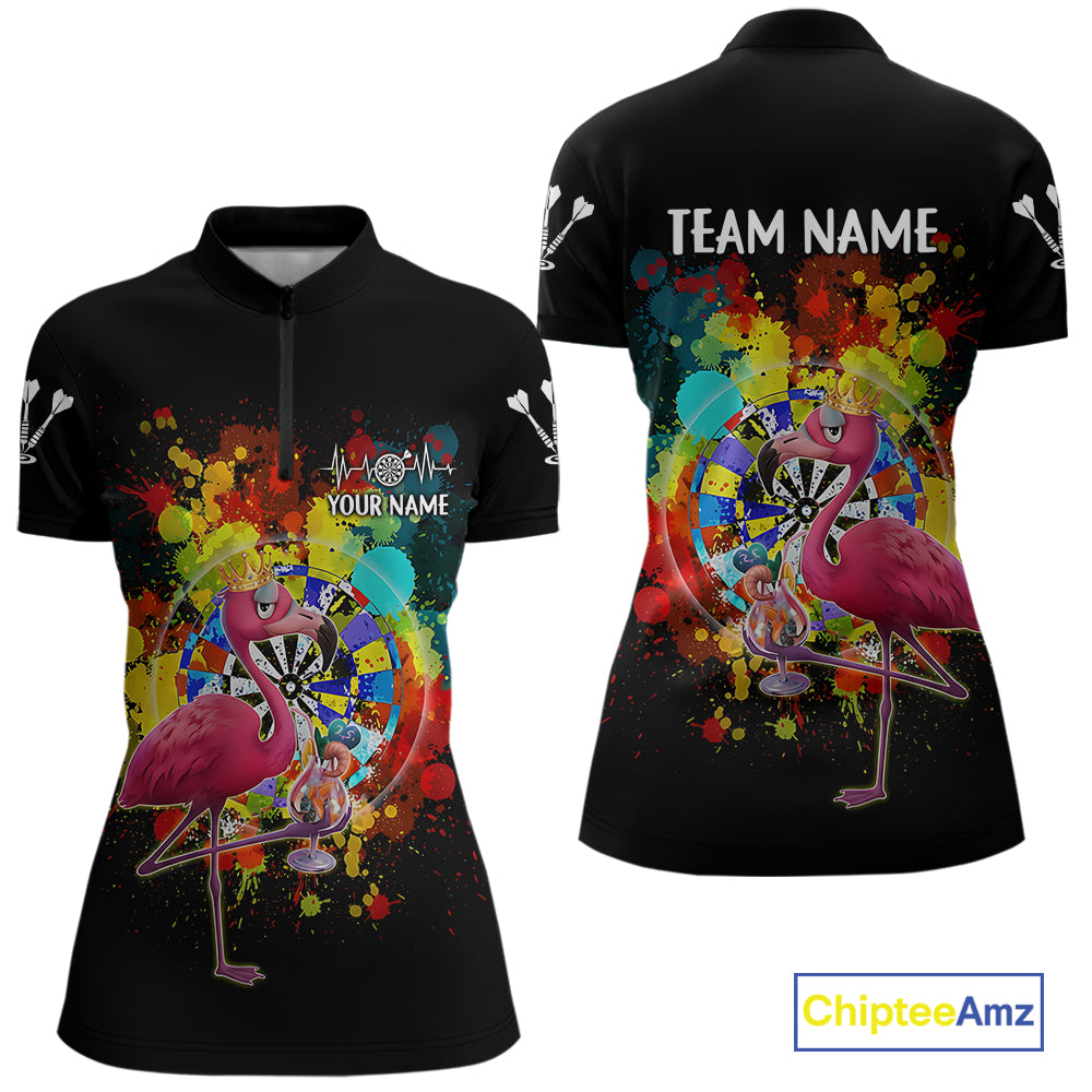 Custom Funny Colorful Crown Flamingo Women Darts Quarter-Zip League Shirts Splatter Dart Jerseys NYN2209