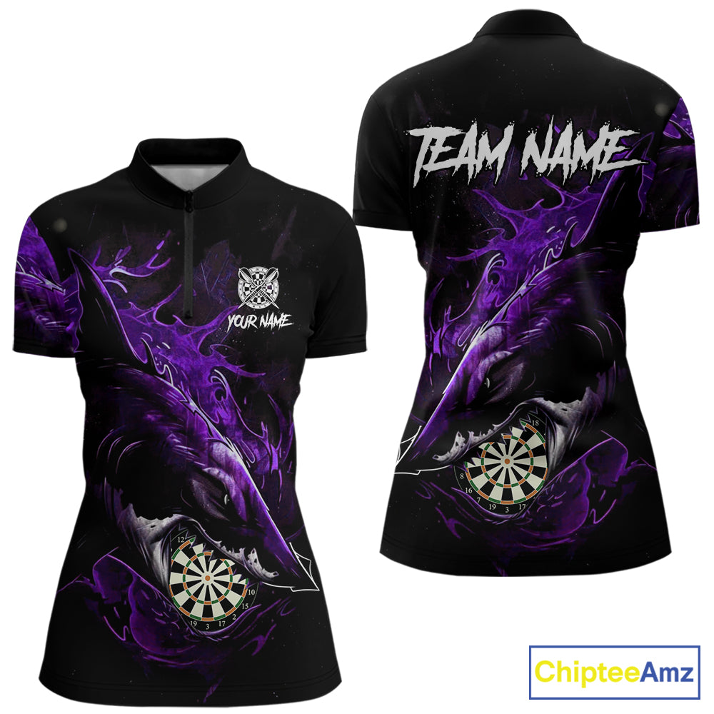 Personalized Purple Horror Shark Women Darts Quarter-Zip League Shirts Funny Grunge Dart Jerseys NYN2220