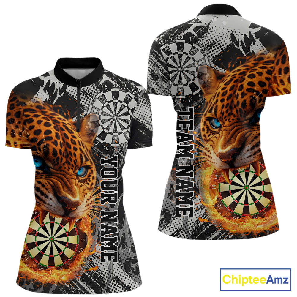 Orange Leopard Flame Dartboard Custom Women Darts Quarter-Zip League Shirts Grunge Dart Jerseys NYN2241