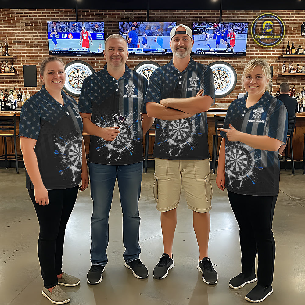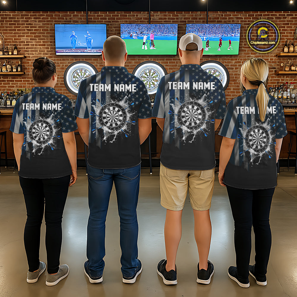 Custom Blue US Flag Water Dartboard Women Darts Quarter-Zip League Shirts Patriotic Dart Jerseys NYN2246