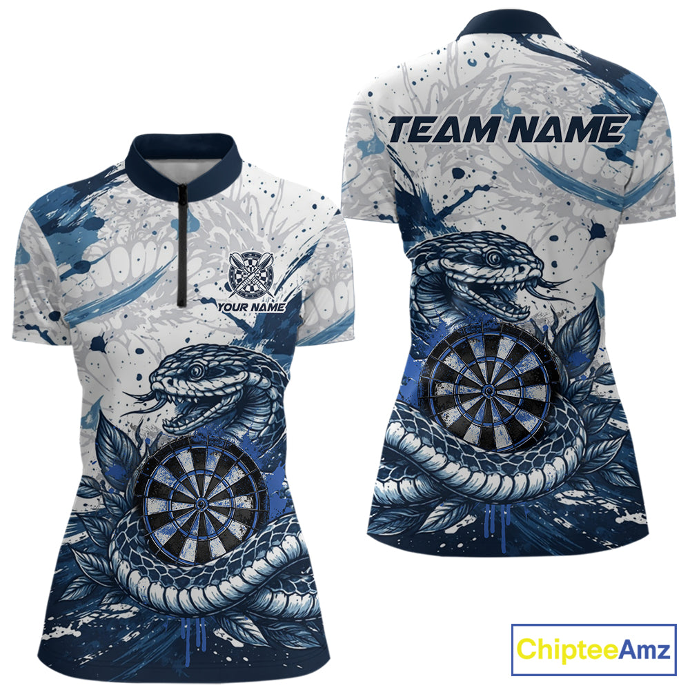 Custom White And Blue Splatter Cobra Dartboard Women Darts Quarter-Zip Shirts Grunge Dart Jerseys NYN2269