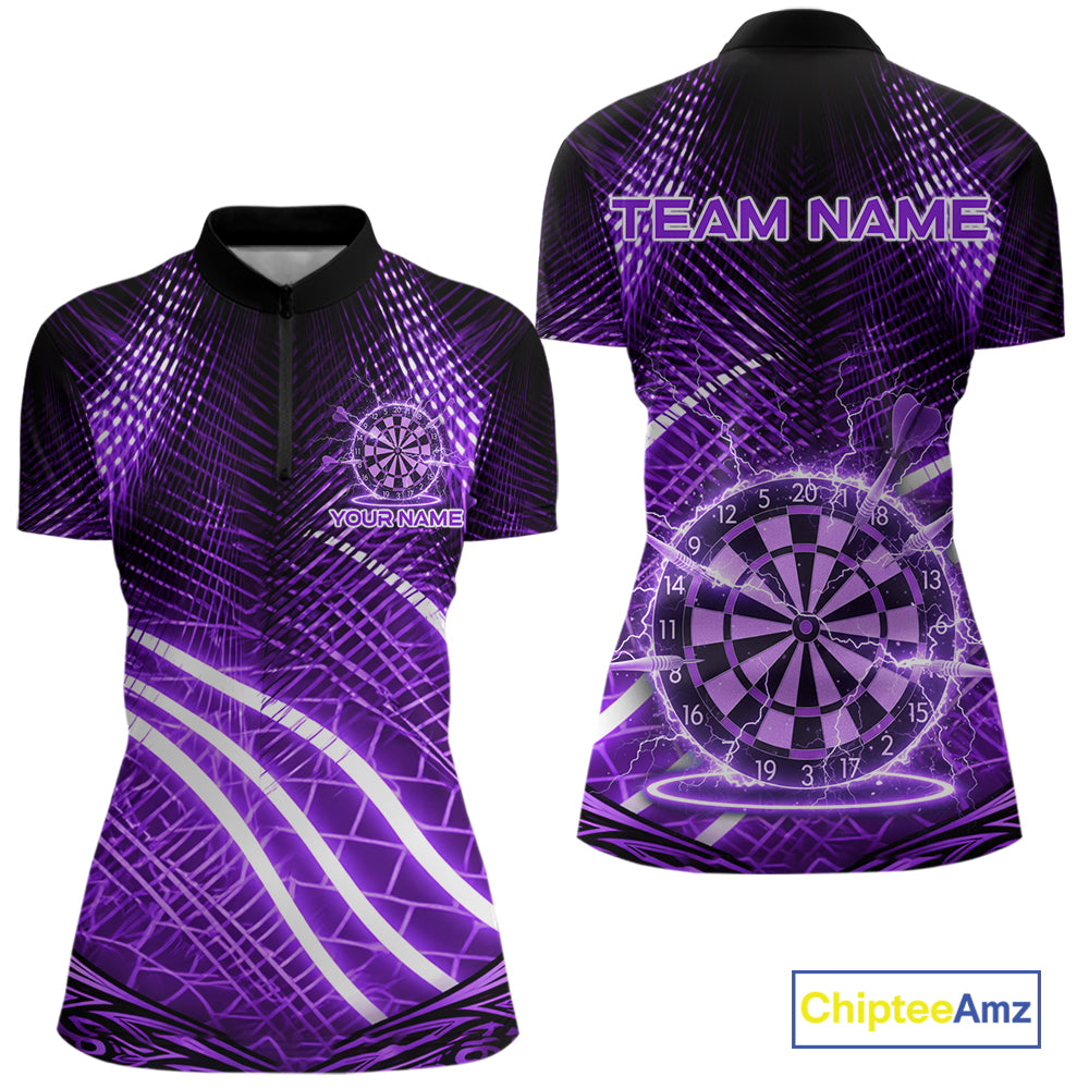 Black And Purple Stripes Light Dartboard Custom Darts Quarter-Zip Shirts Women Dart Team Jerseys NYN2275