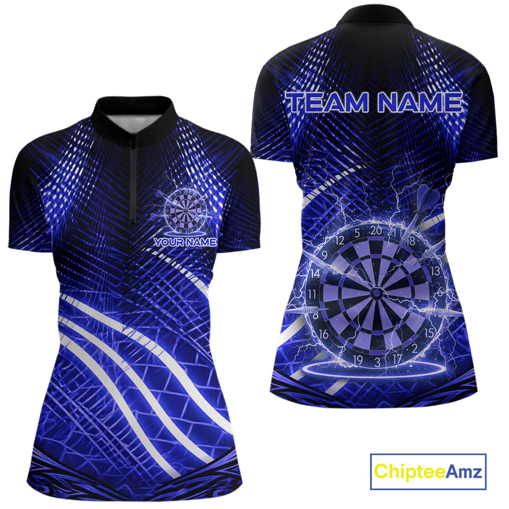 Black And Blue Stripes Light Dartboard Custom Darts Quarter-Zip Shirts Women Dart Team Jerseys NYN2277