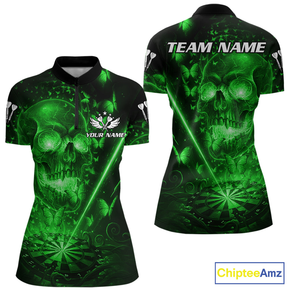 Lightning Green Butterflies Skull Dartboard Custom Women Darts 1/4-Zip Shirt Dart Jerseys NYN2354