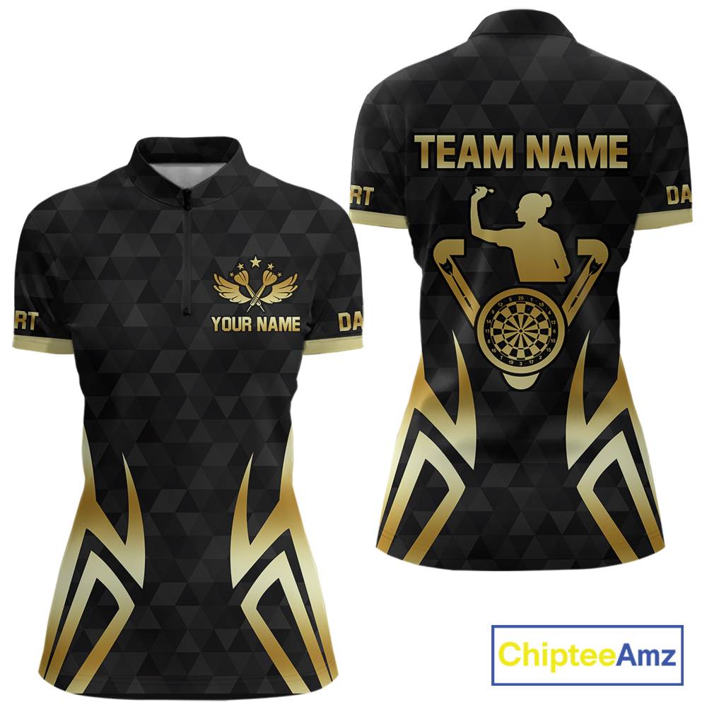 Black & Gold Human Play Dartboard Women Dart Shirts Custom Darts Polo Team Jersey NYN2449