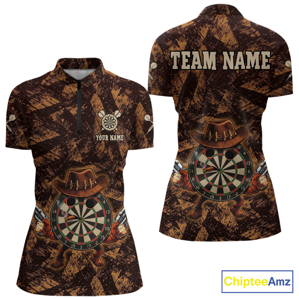 Funny Dartboard Cowhand Women Darts Quarter-Zip Shirt Personalized Brown Grunge Dart Team Jerseys NYN2510