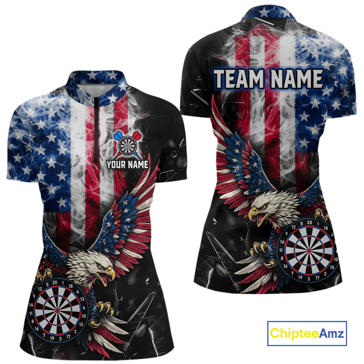 Smoking US Flag & Eagle Dartboard Women Darts Quarter-Zip Shirt Custom Patriotic Dart Team Jerseys NYN2511