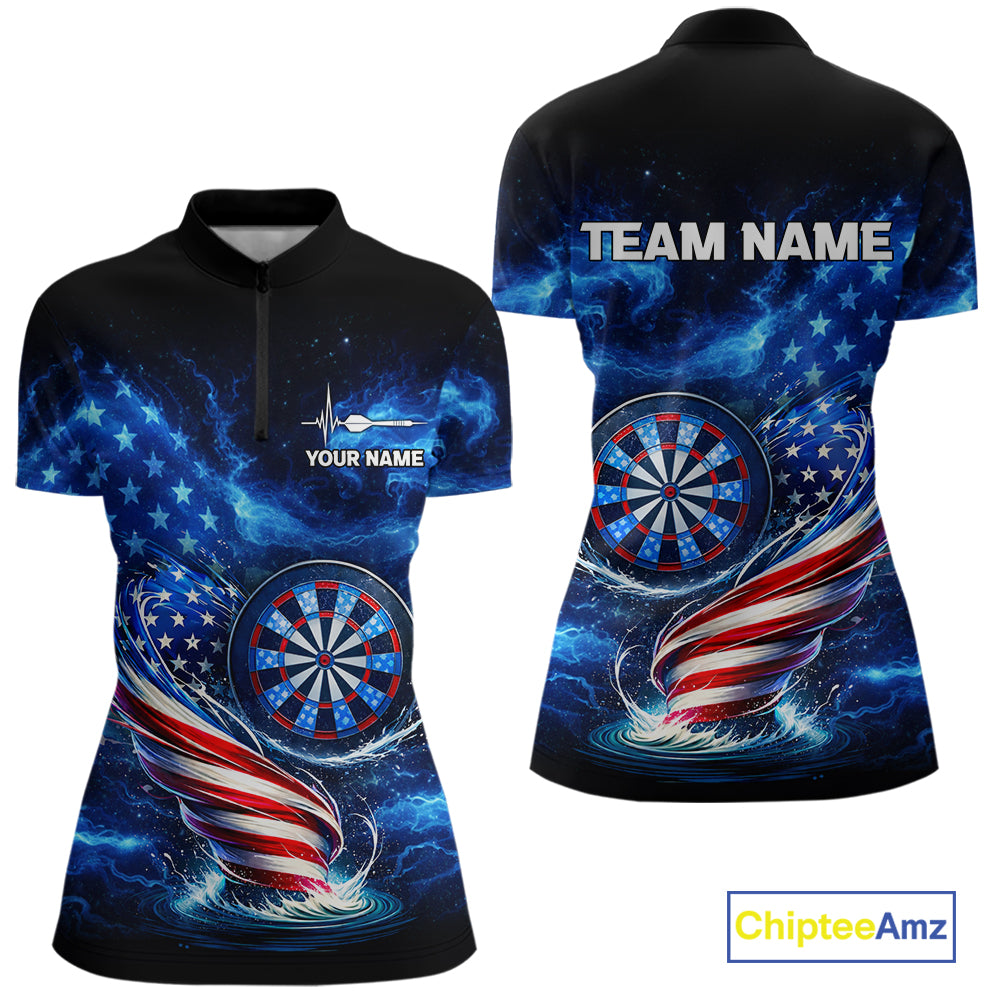 American Flag Dartboard Tornado Women Darts Quarter-Zip Shirt Custom Patriotic Funny Dart Team Jerseys NYN2525