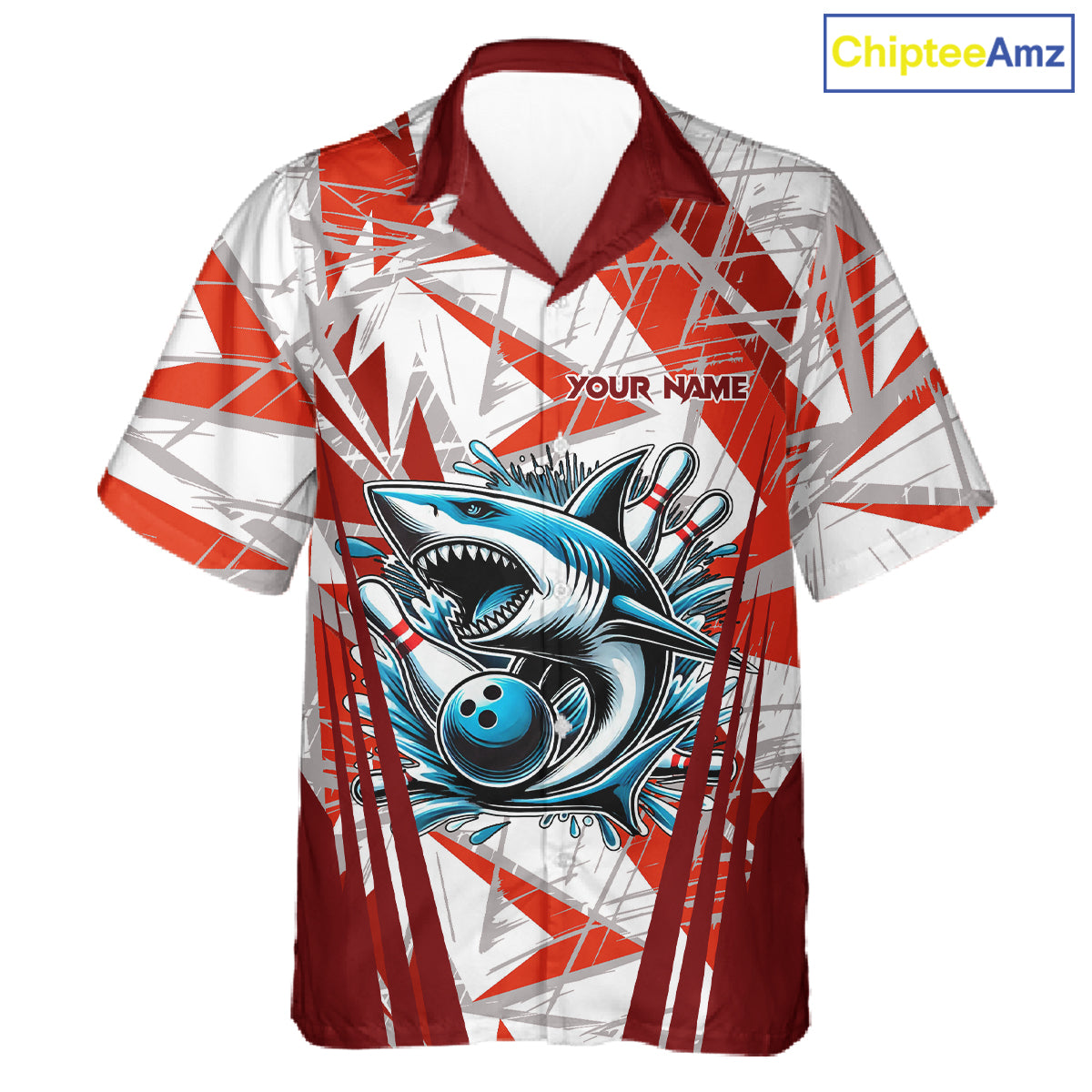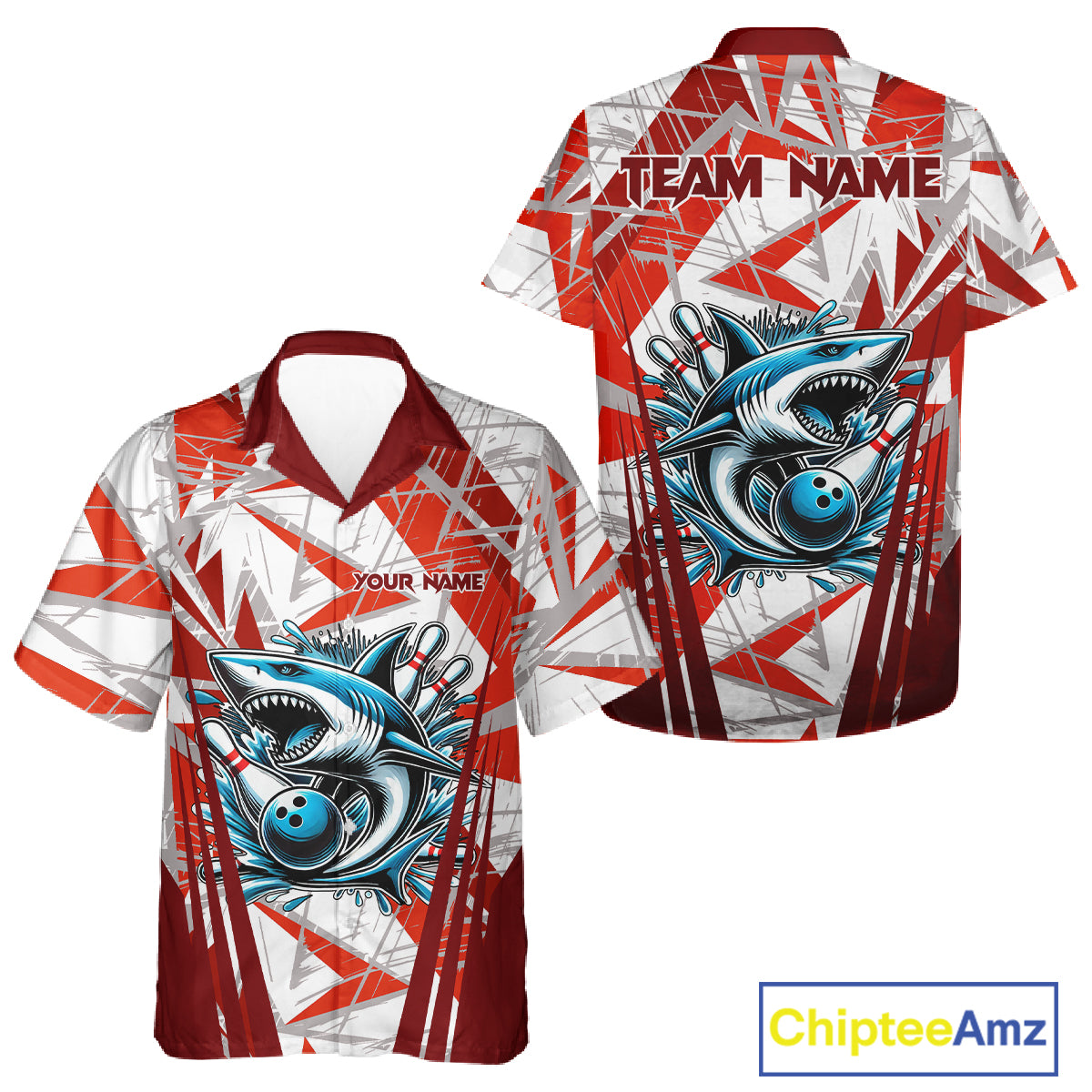 Red and White Camo Shark Bowling Team Hawaiian shirts Custom Shark Bowling button up Shirt NQS11472