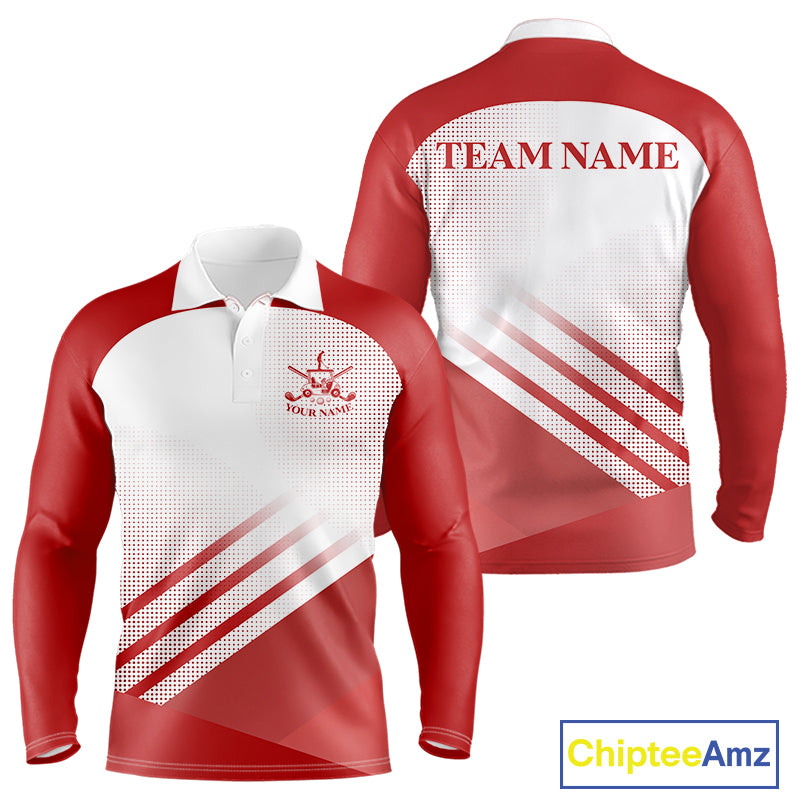 Red And White Long Sleeve Golf Polo Shirts For Men Custom Golf Tops For Men, Personalized Golf Gifts NHN0059