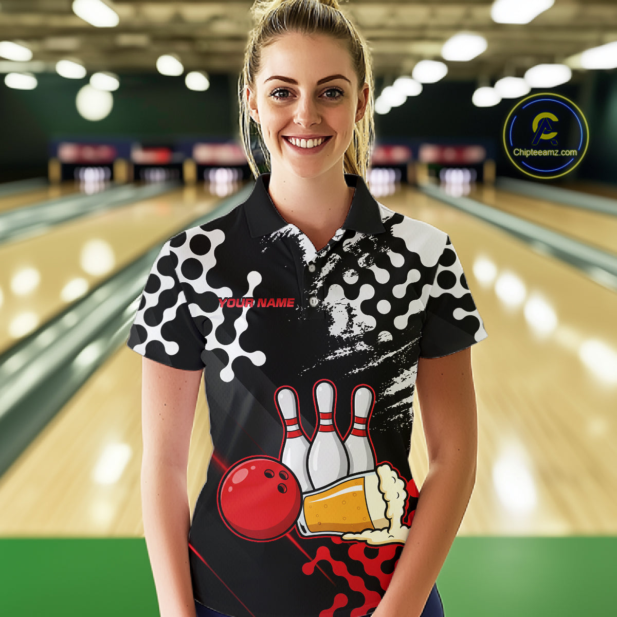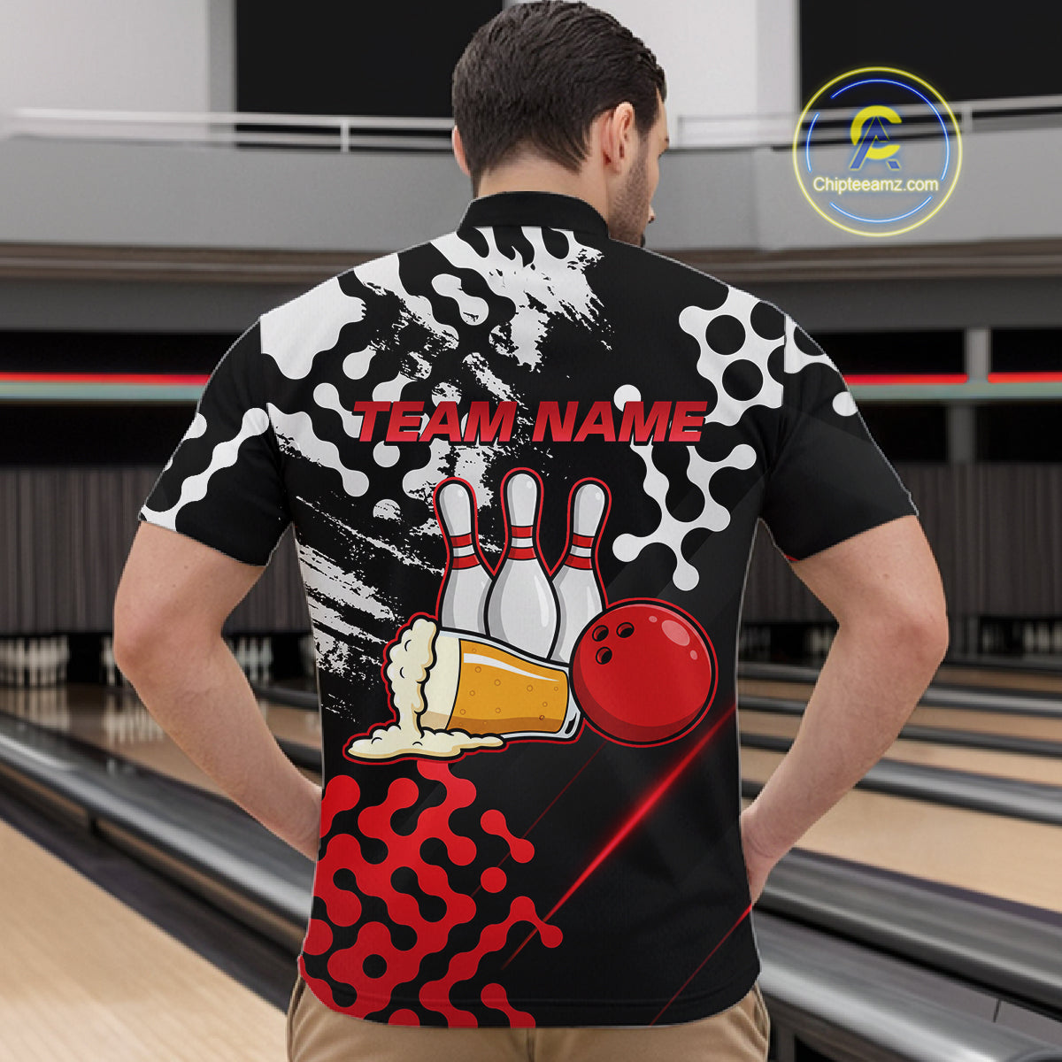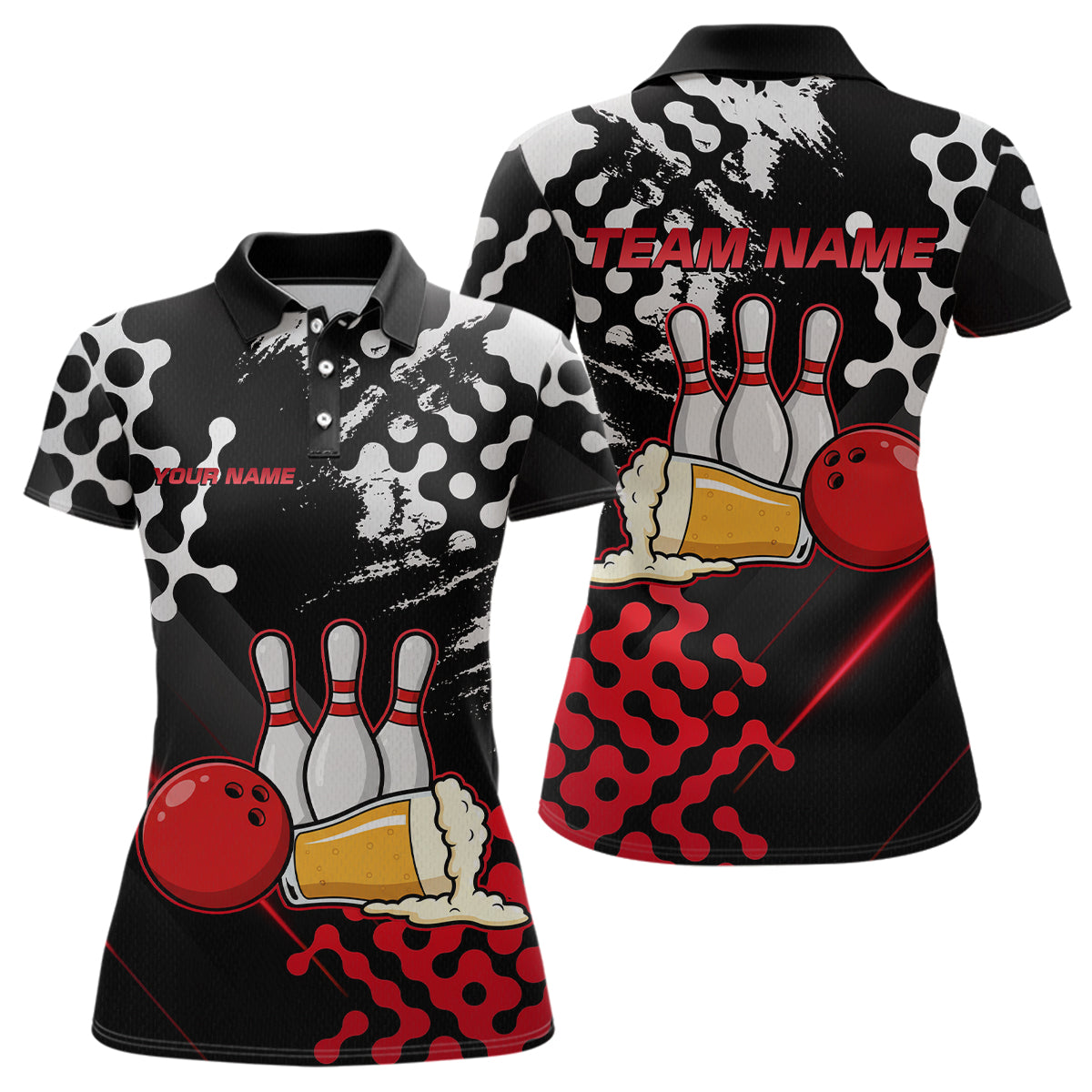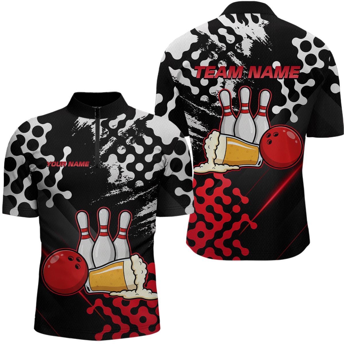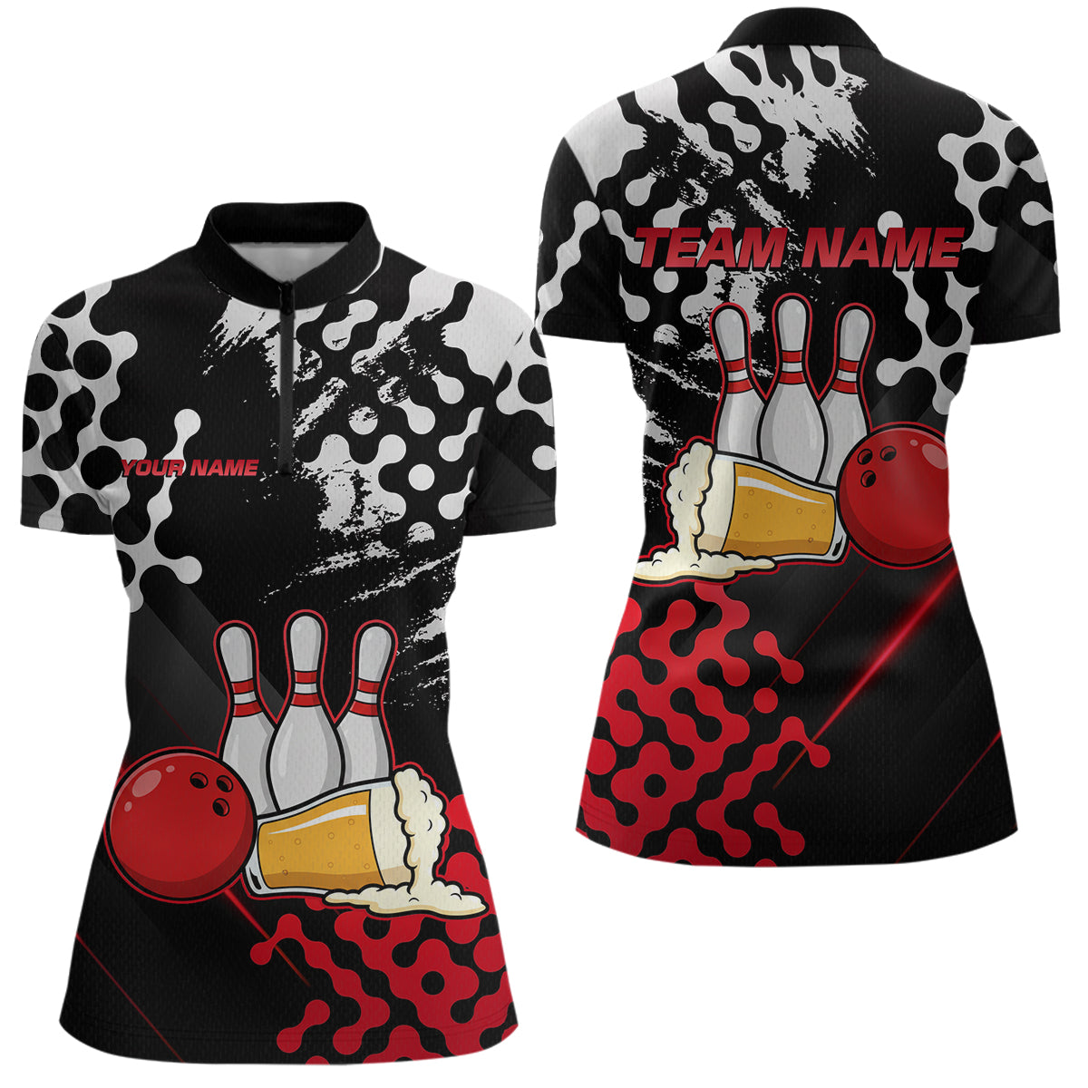 Red Beer Bowling Shirts for Team Women Men Beer Bowling Polo&1/4 Zip Bowl League MBL255