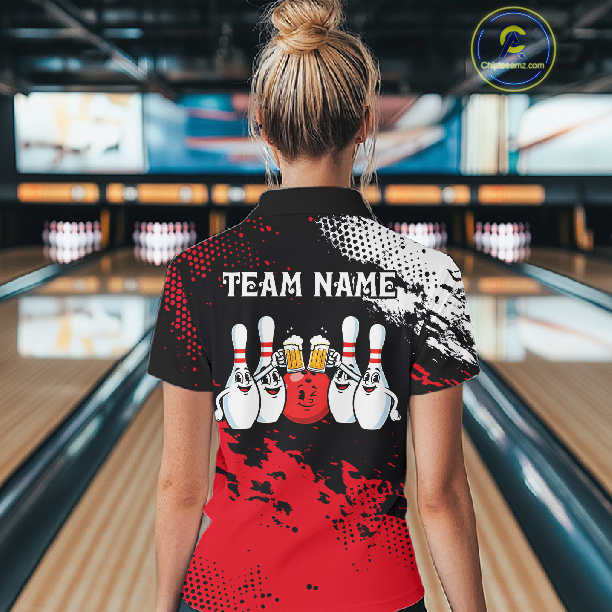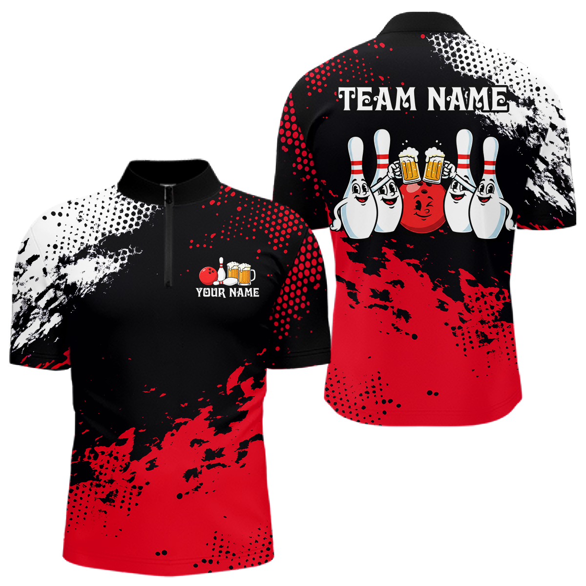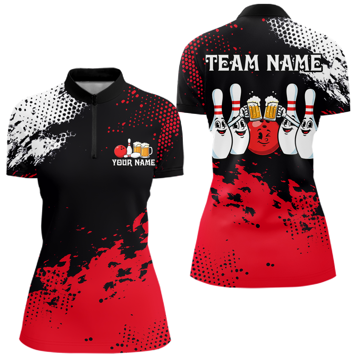 Red Funny Beer Bowling Shirts for Team Women Men Bowling Polo&1/4 Zip Bowl League MBL254