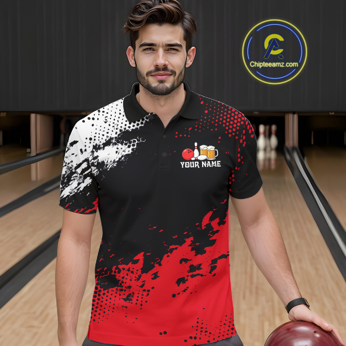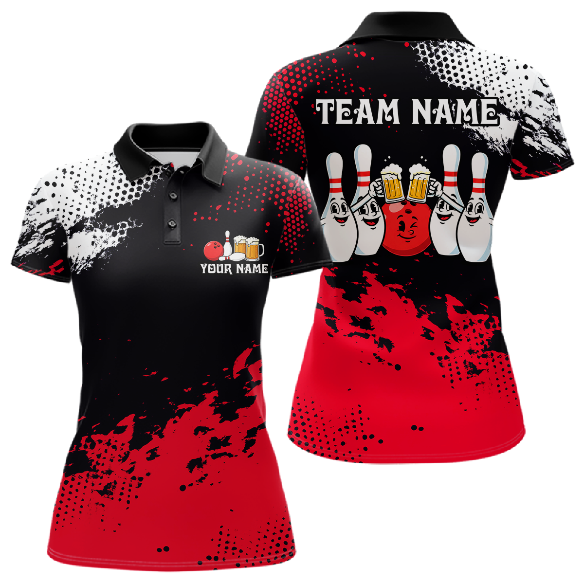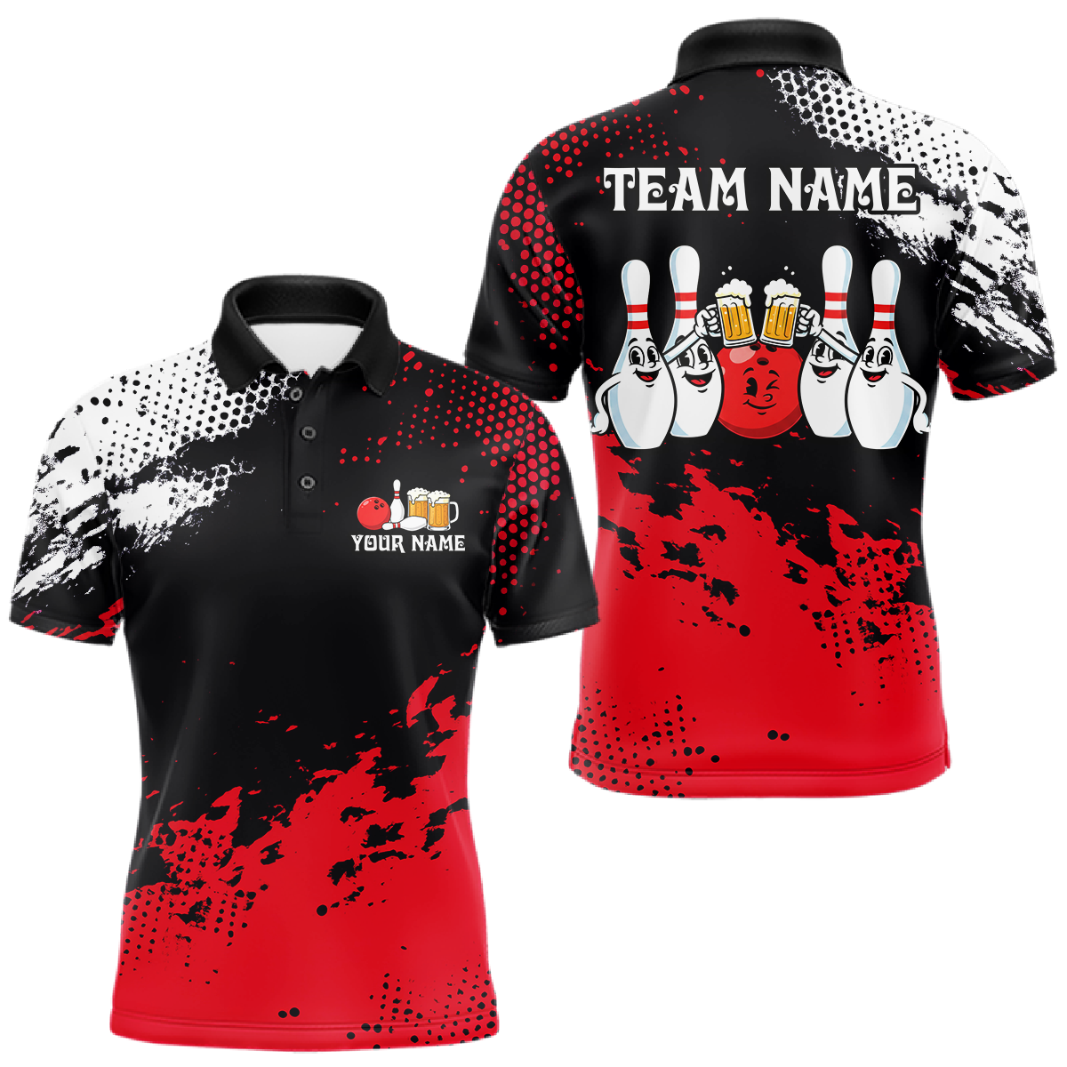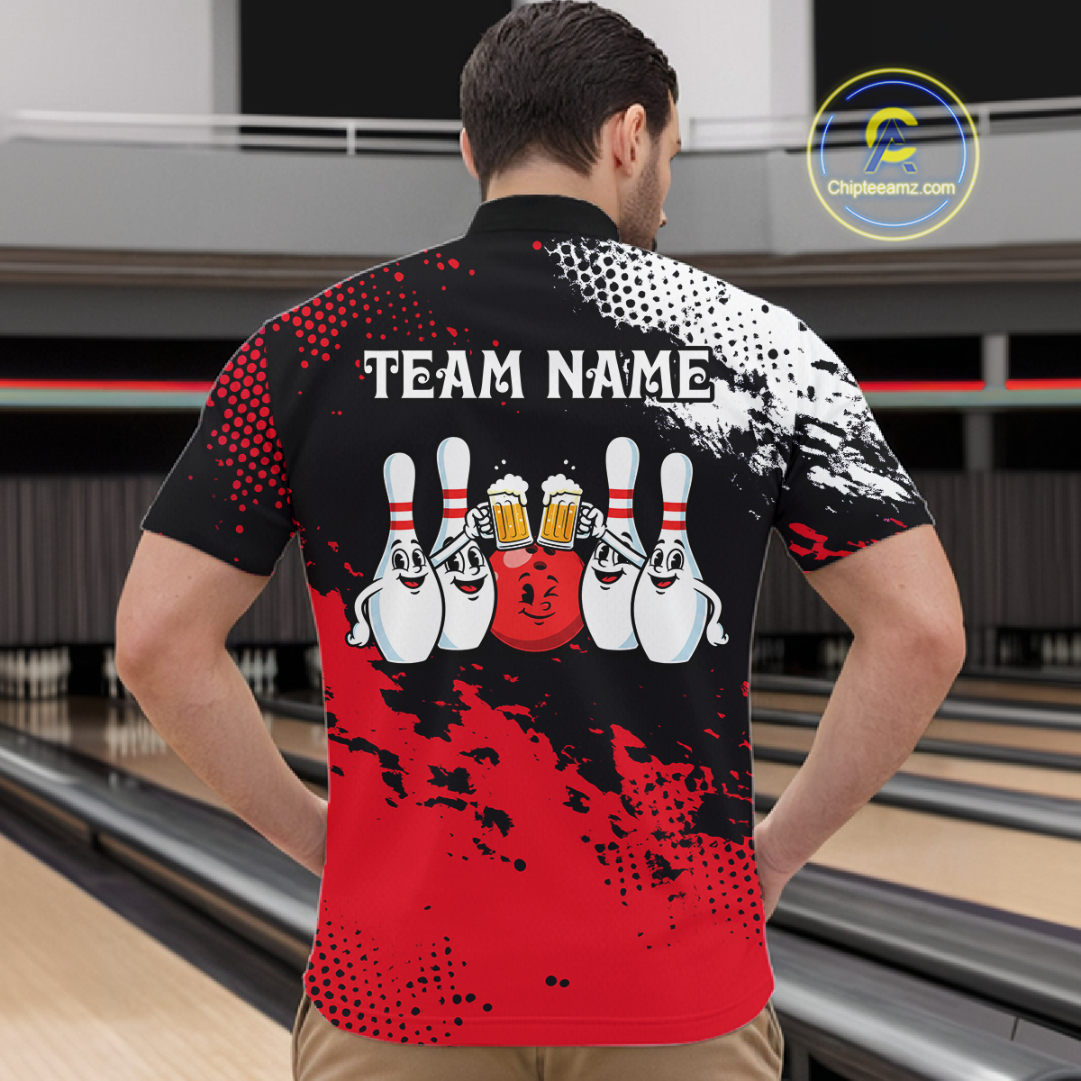 Red Funny Beer Bowling Shirts for Team Women Men Bowling Polo&1/4 Zip Bowl League MBL254