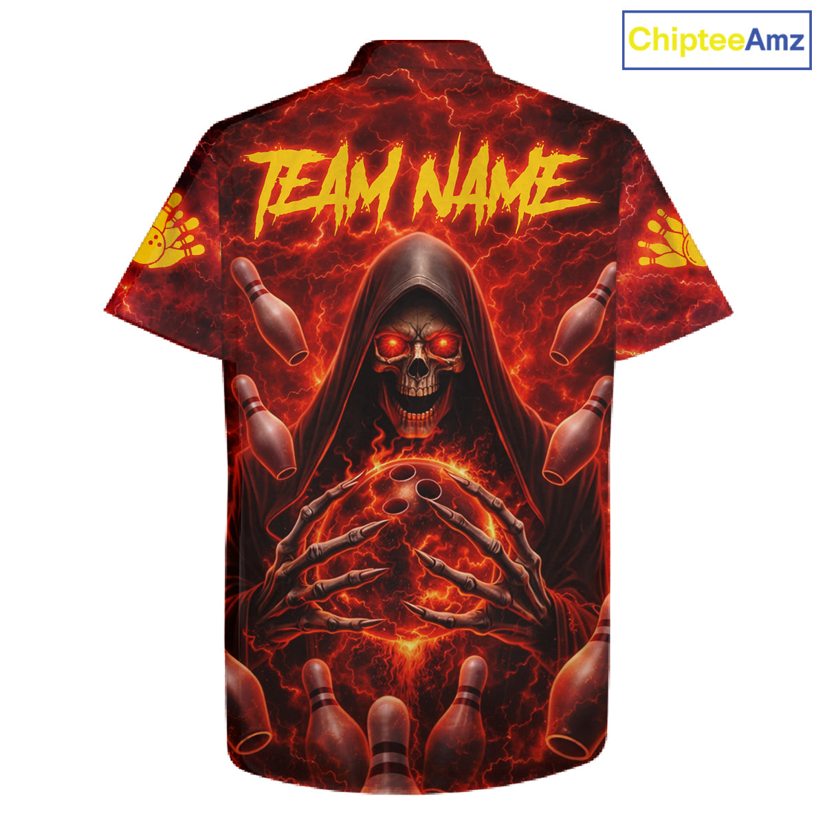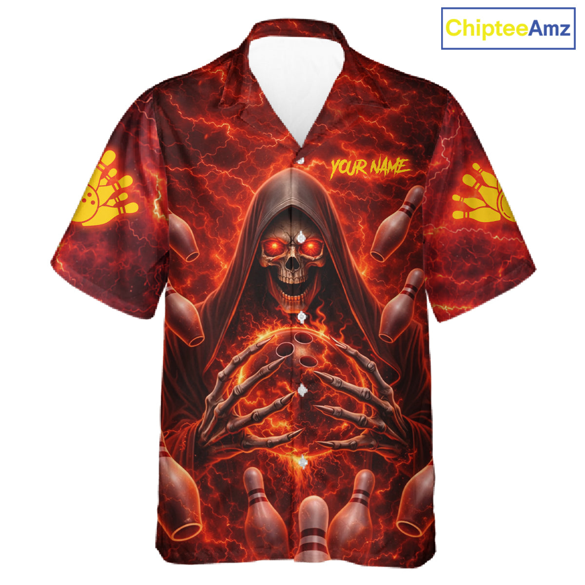 Red Lightning Thunder Skull Reaper Bowling Hawaiian Shirt Custom Team Bowling Button-up Shirt NQS11642