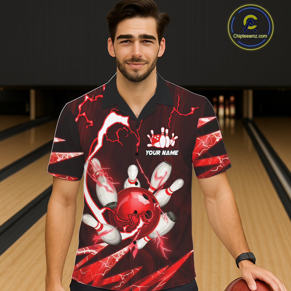 Red Thunder Lightning bowling ball and pins jersey Custom Team Bowling Hawaiian Shirt NQS11281