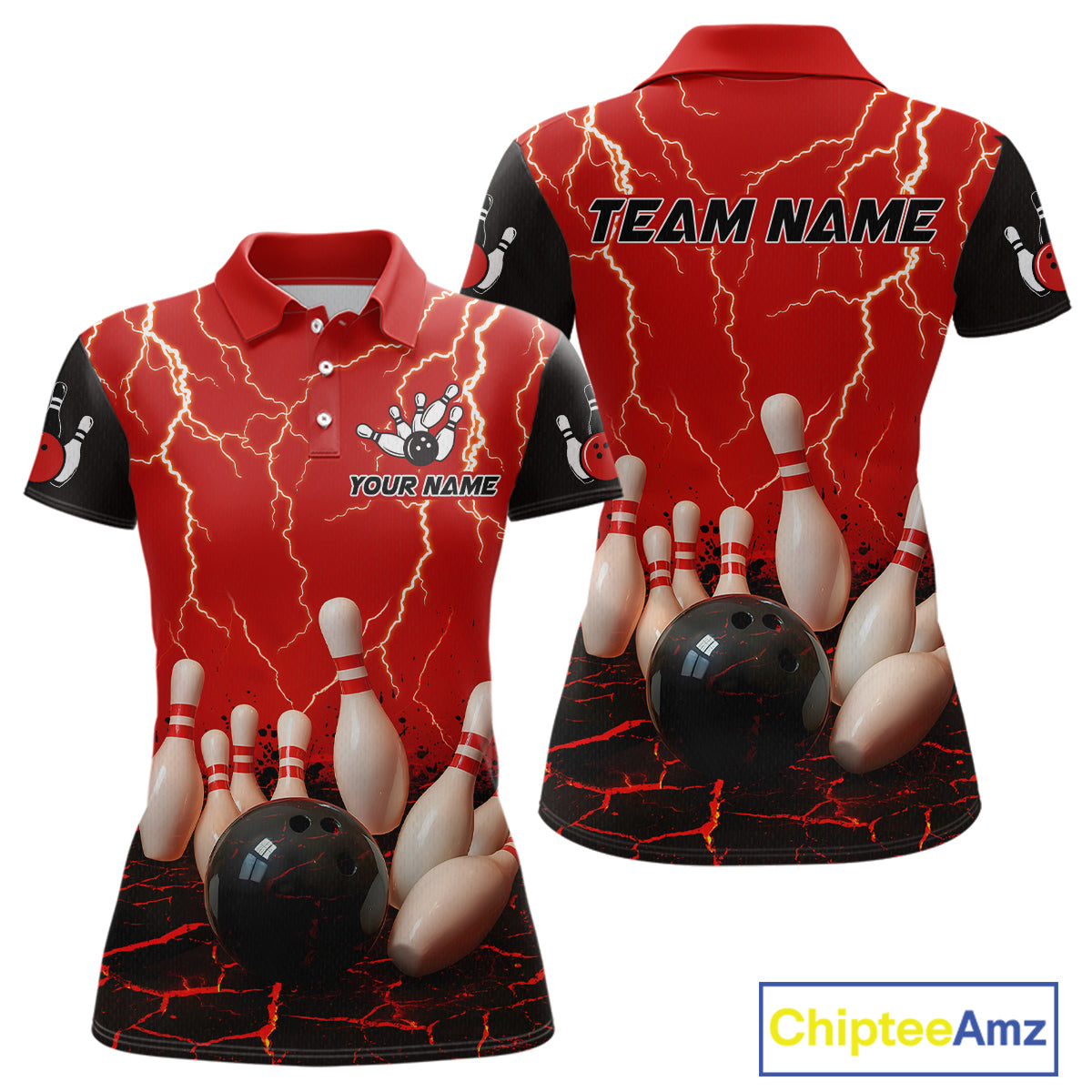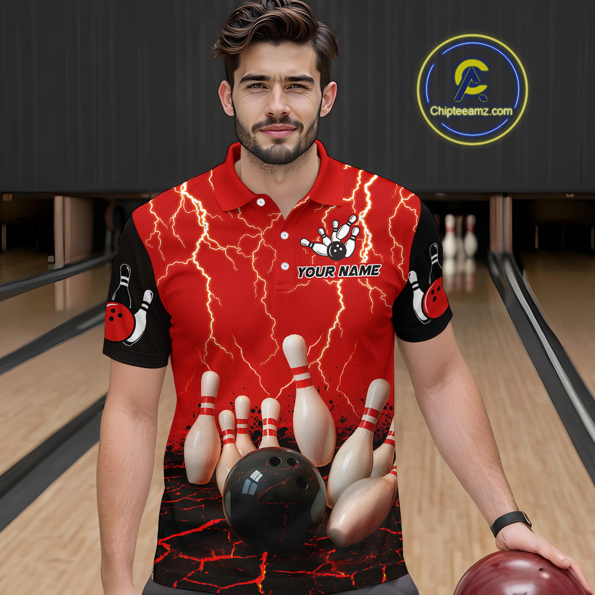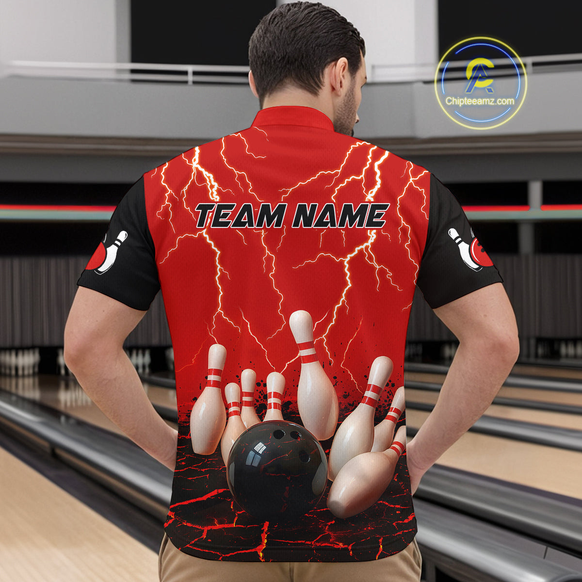 Red Thunder Lightning & Lava Bowling Shirt for Men Women Team Bowling Jersey MBL92