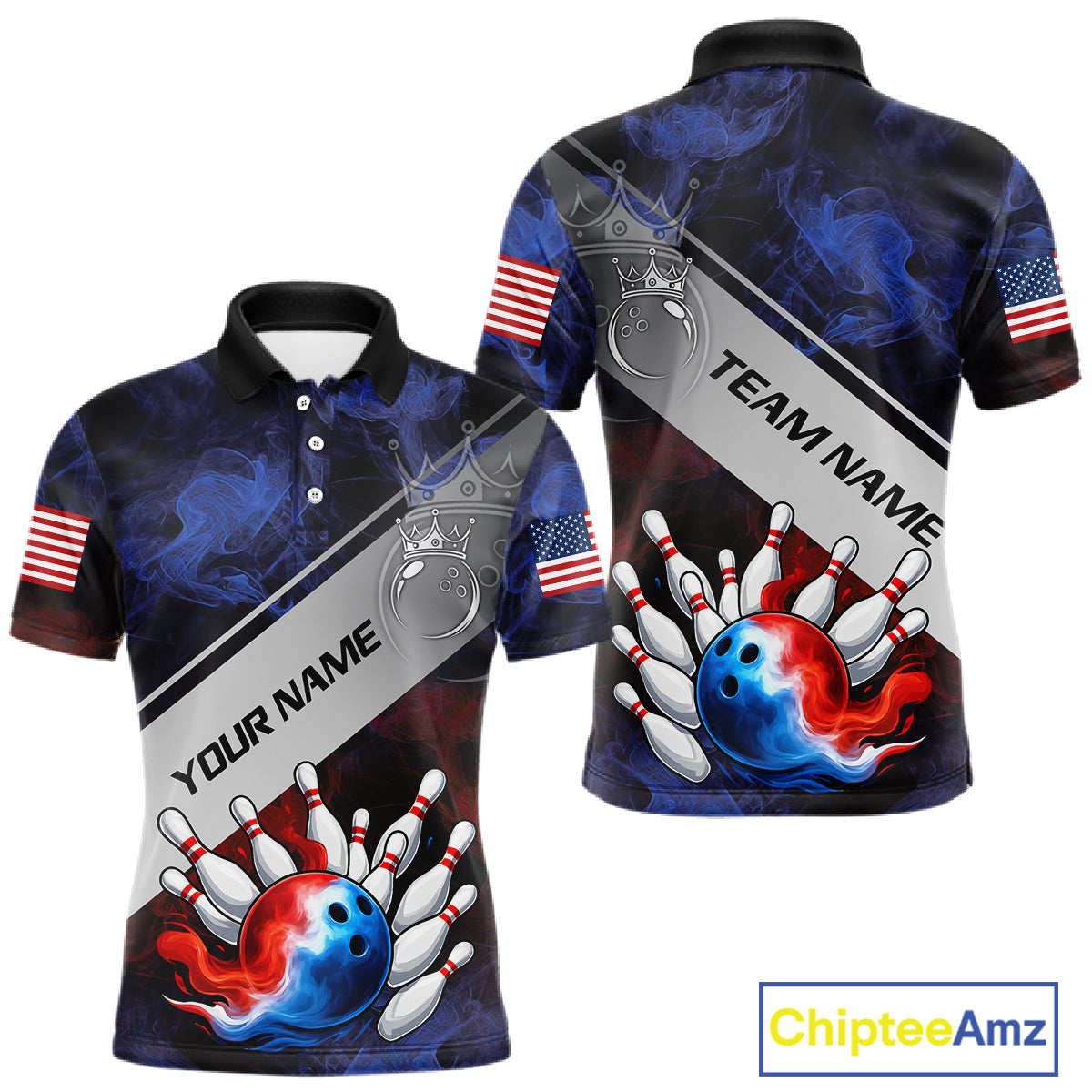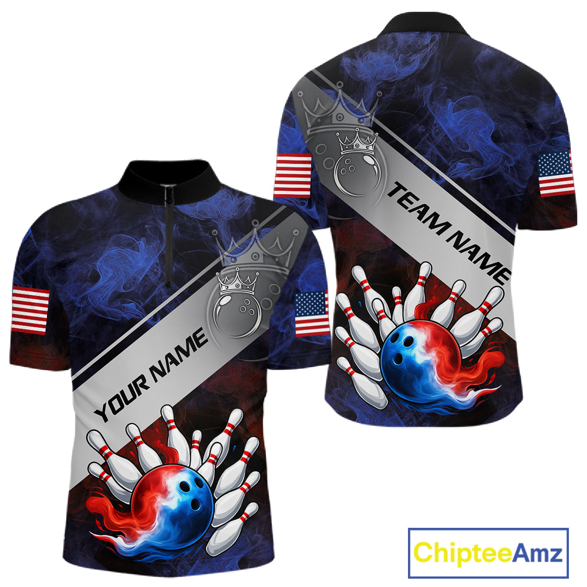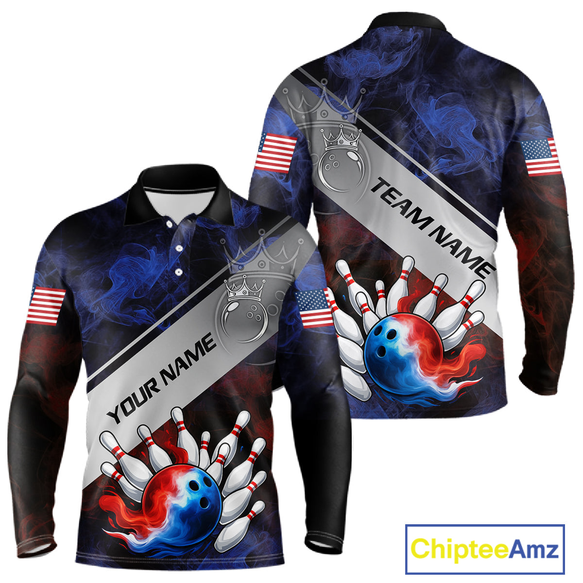Red, White & Blue Smoke American Flag Bowling shirts For men Custom patriotic Team bowling jersey NQS11269
