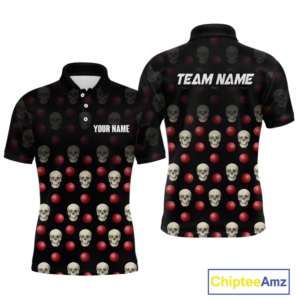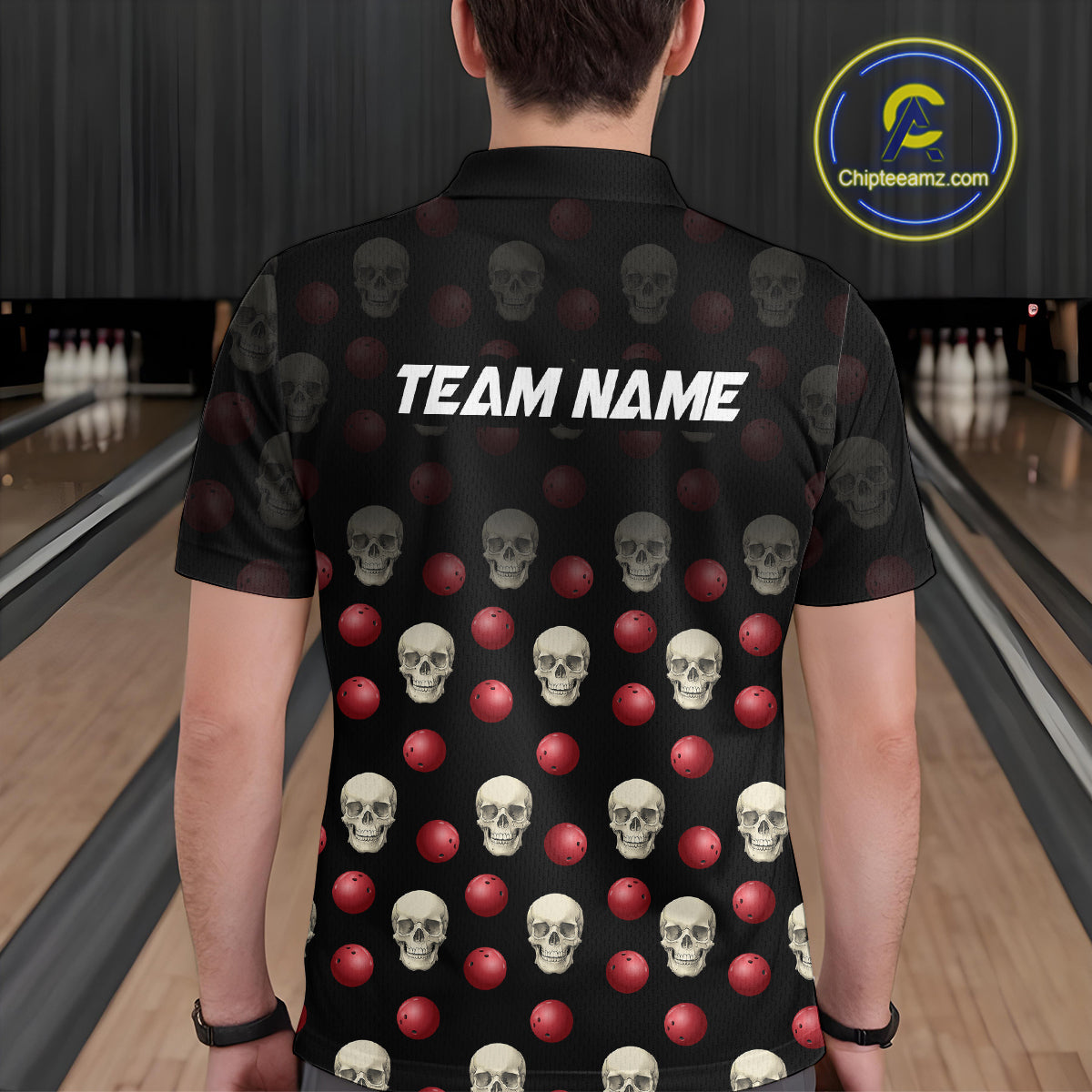 Skull Bowling Shirt Personalized Polo Bowling Team jersey Pattern Bowling League QZT690