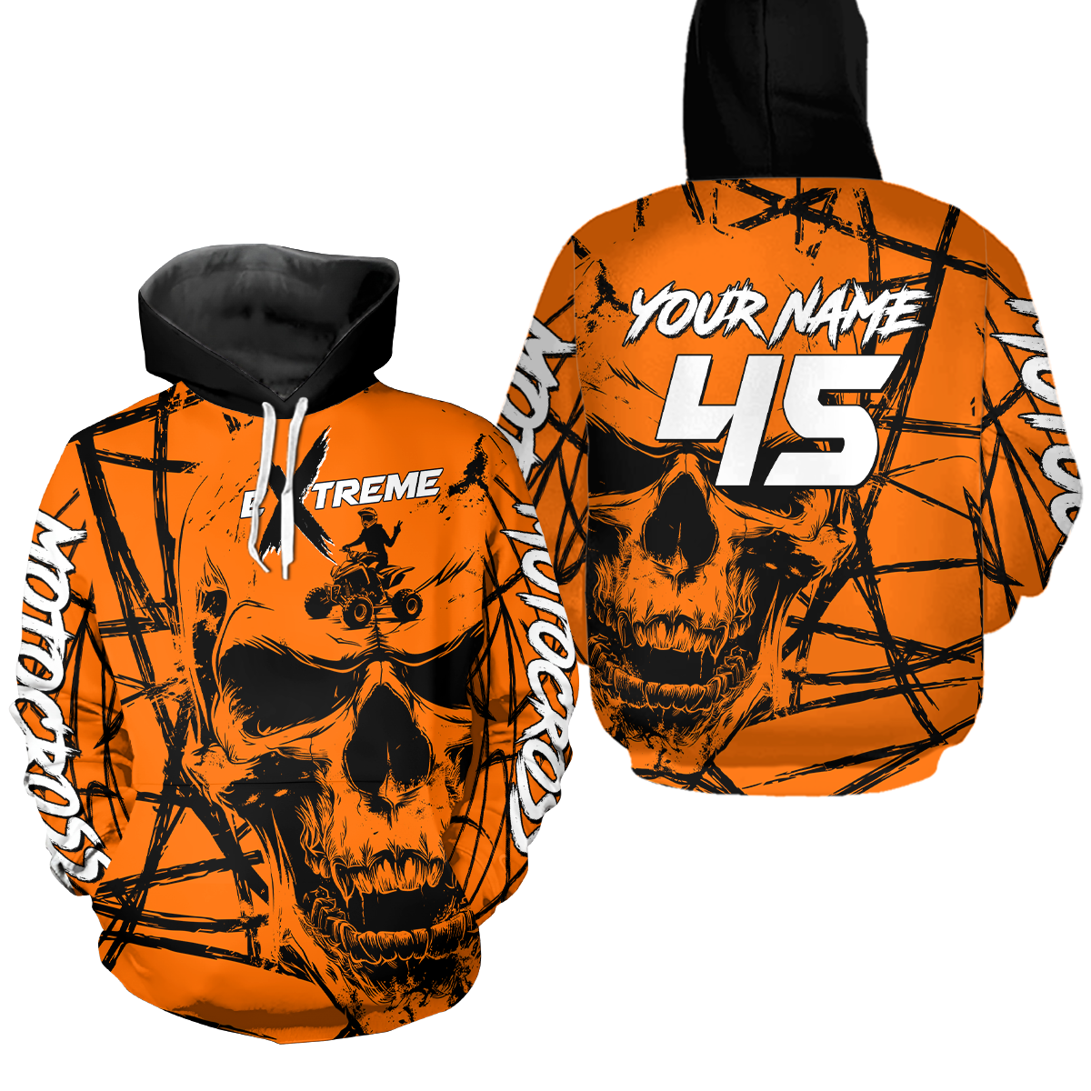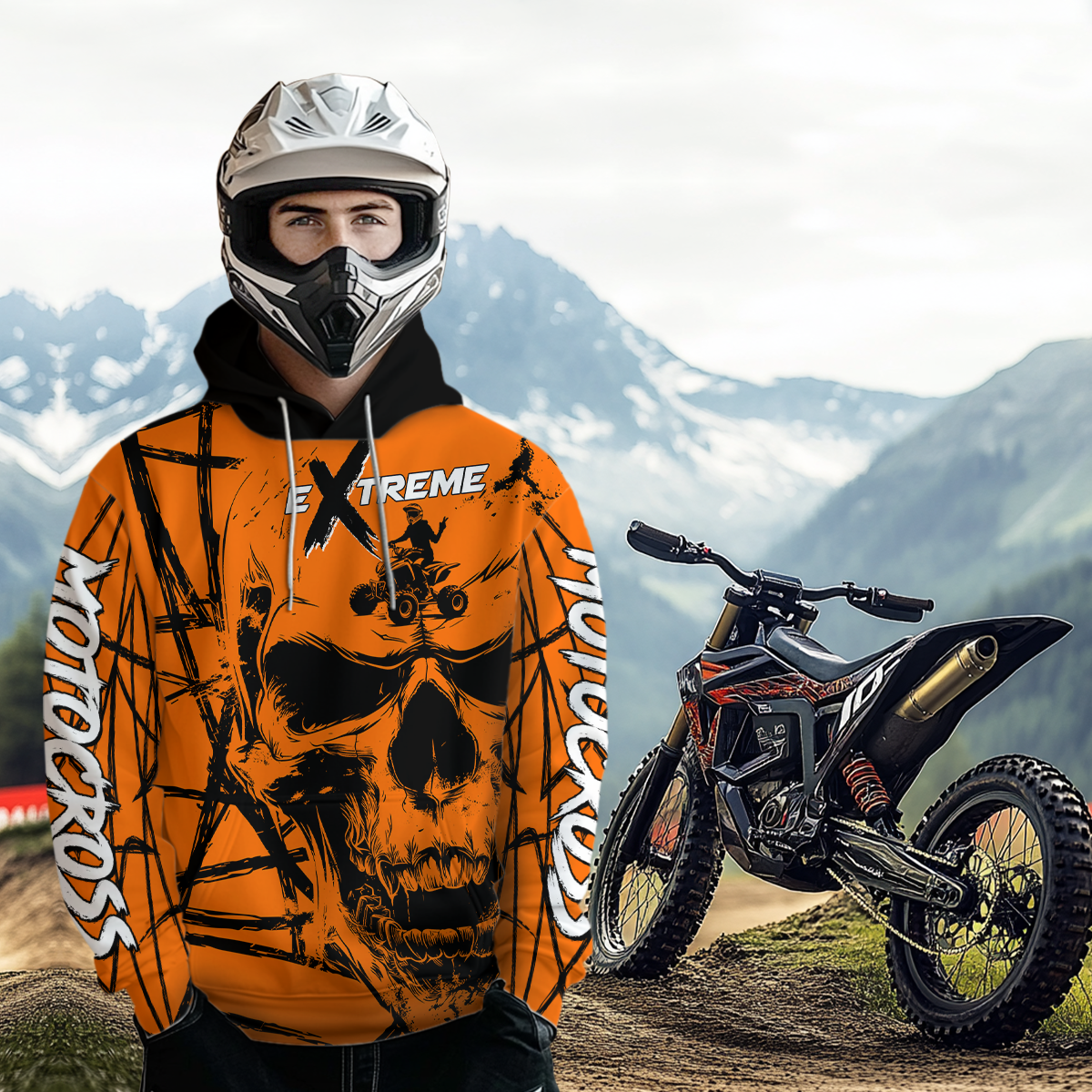 Skull Orange ATV Motocross Hoodie for Men Women Quad Shirt ATV Riding Hoodie MHATV24