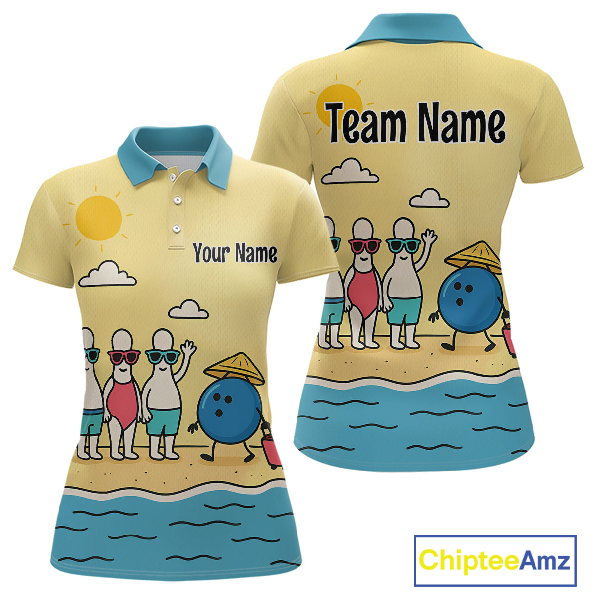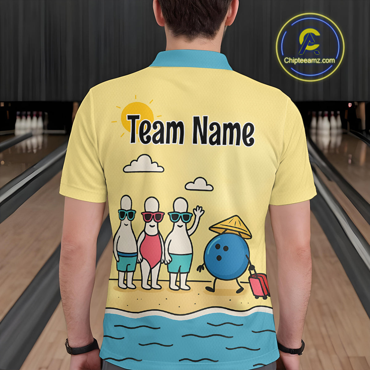 Summer Bowling Shirt Custom Polo Bowling Jersey Funny Bowling Pins and Ball QZT695