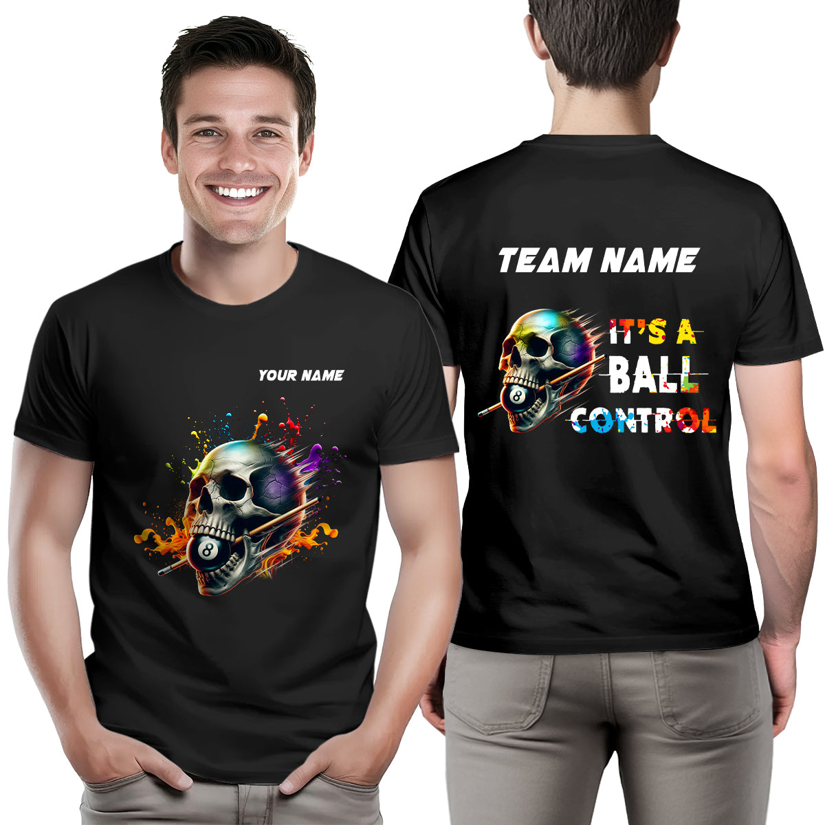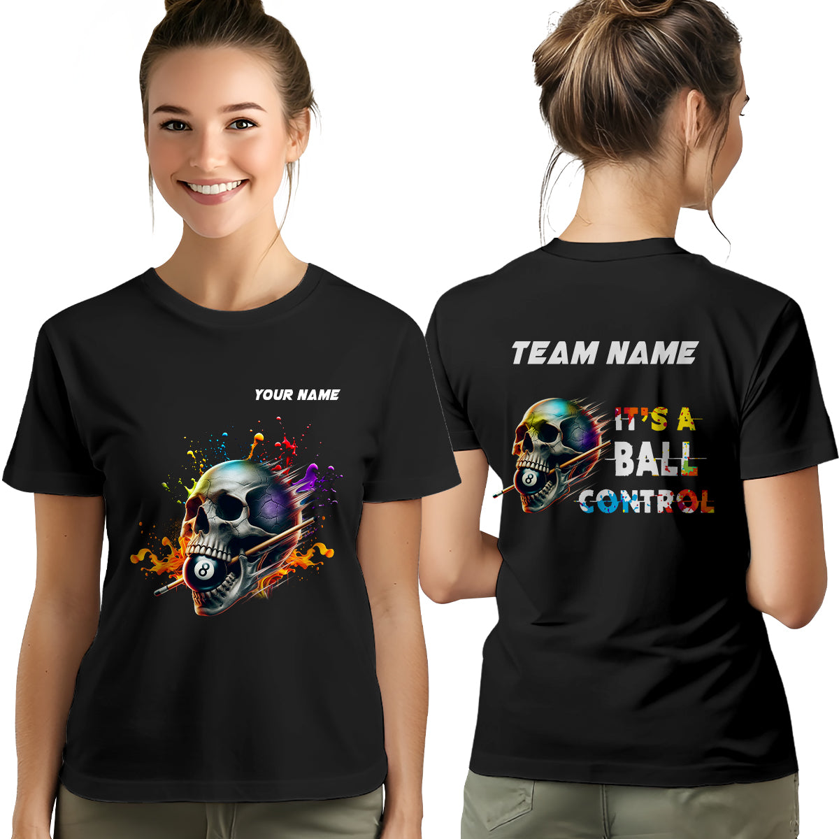It's A Ball Control Funny Colorful Skull Billiard T-Shirts Custom 8 Ball Pool Shirt For Team Player TDM3919