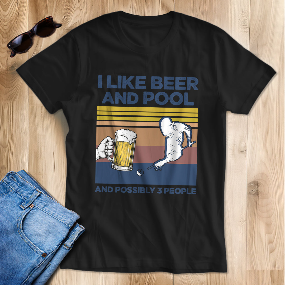 Funny Retro Billiard Shirts I Like Beer And Pool And Possibly 3 People T-Shirts, Pool Player Gifts TDM3938
