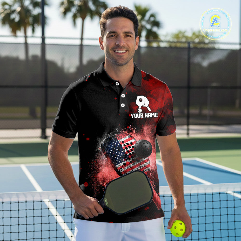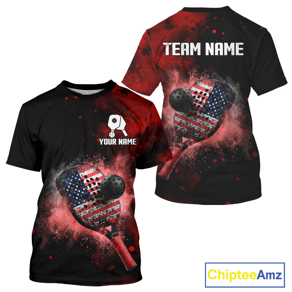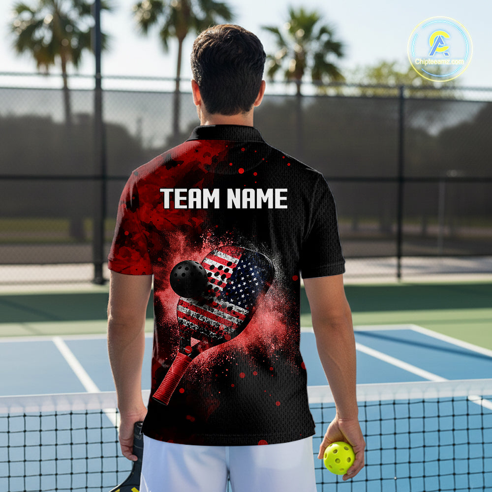 Custom Black And Red Paddle & Ball Pickleball Jerseys Men US Flag Pickleball Shirts NYN2222
