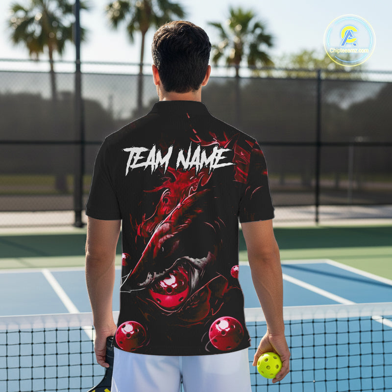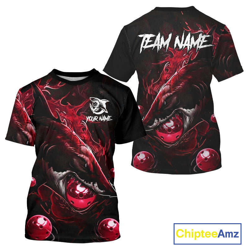 Custom Red Grunge Shark Pickleball 3D Ball Jerseys Men Funny Pickleball League Shirts NYN2226