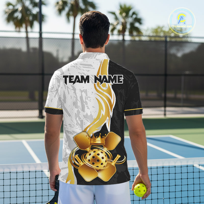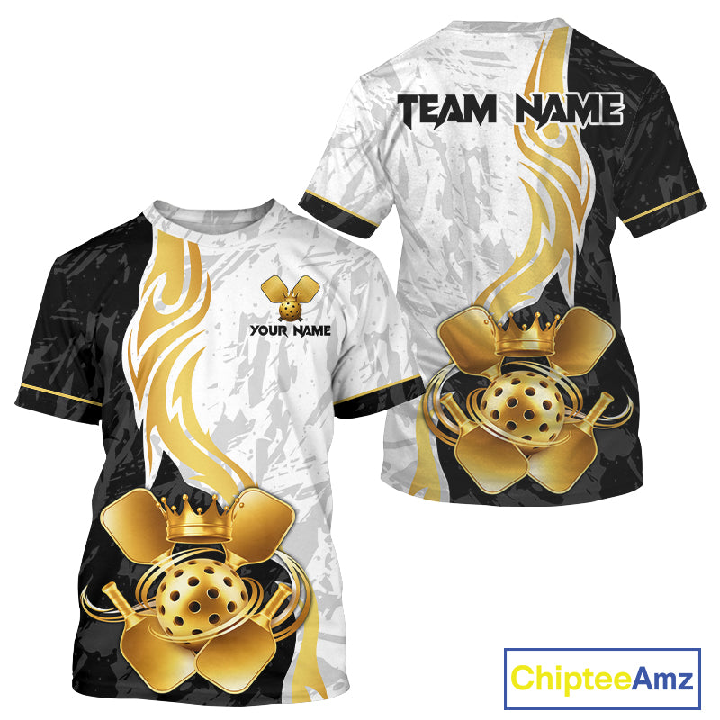 Black-White Gold Crown Pickleball Paddle & Ball Jerseys Custom Men Pickleball League Shirts NYN2234