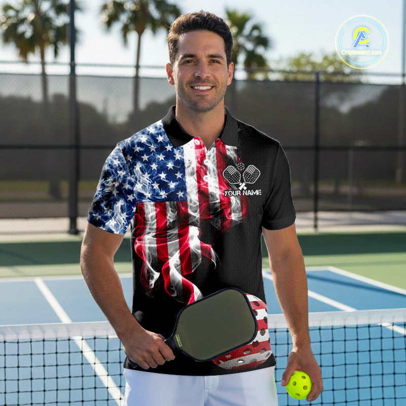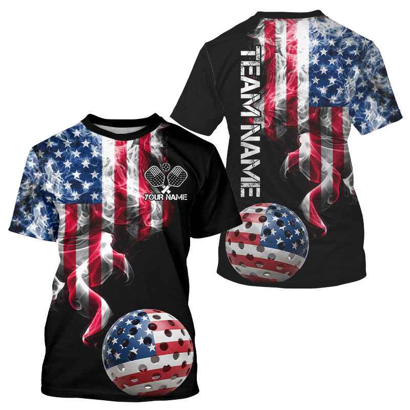 US Flag Smoking Pickleball Ball T-Shirt For Men Custom Patriotic Pickleball Team Jerseys NYN2490