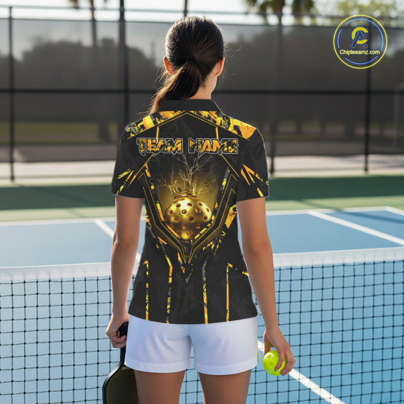 Custom Black And Yellow Gold Crown Pickleball 3D Ball Jerseys Women Pickleball League Shirts NYN2228