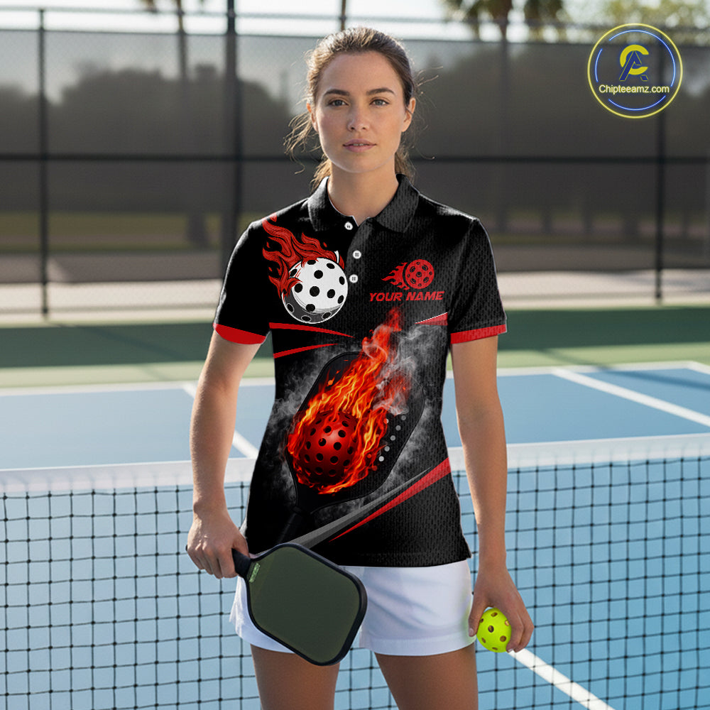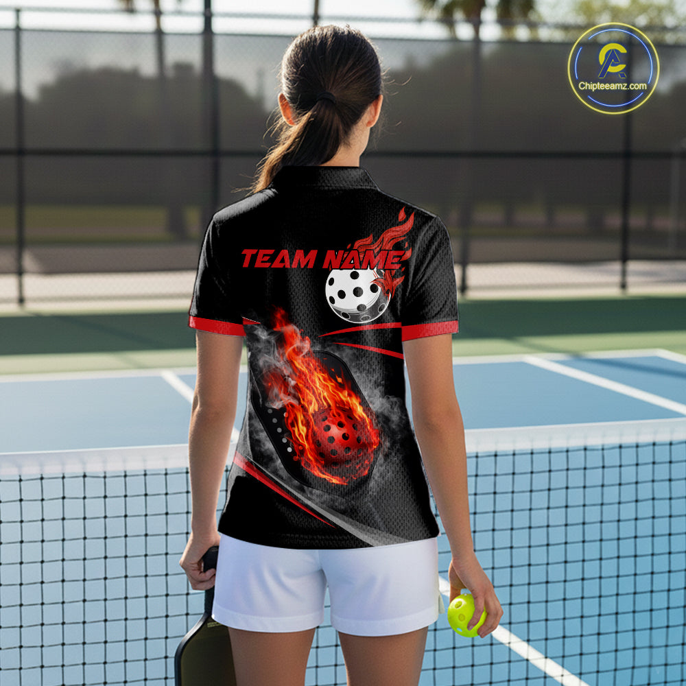 Custom Red Flaming Smoke Paddle & Ball Pickleball Jerseys Pickleball League Shirts For Women NYN2231