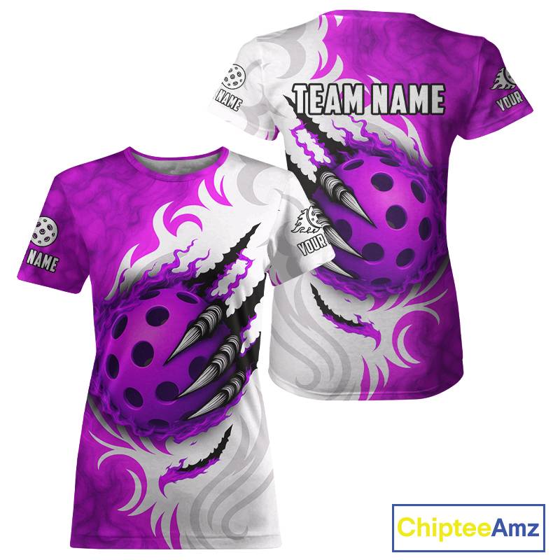 White & Purple Claw Scratches Pickleball Ball T-Shirt For Women Custom Pickleball Jerseys NYN2483