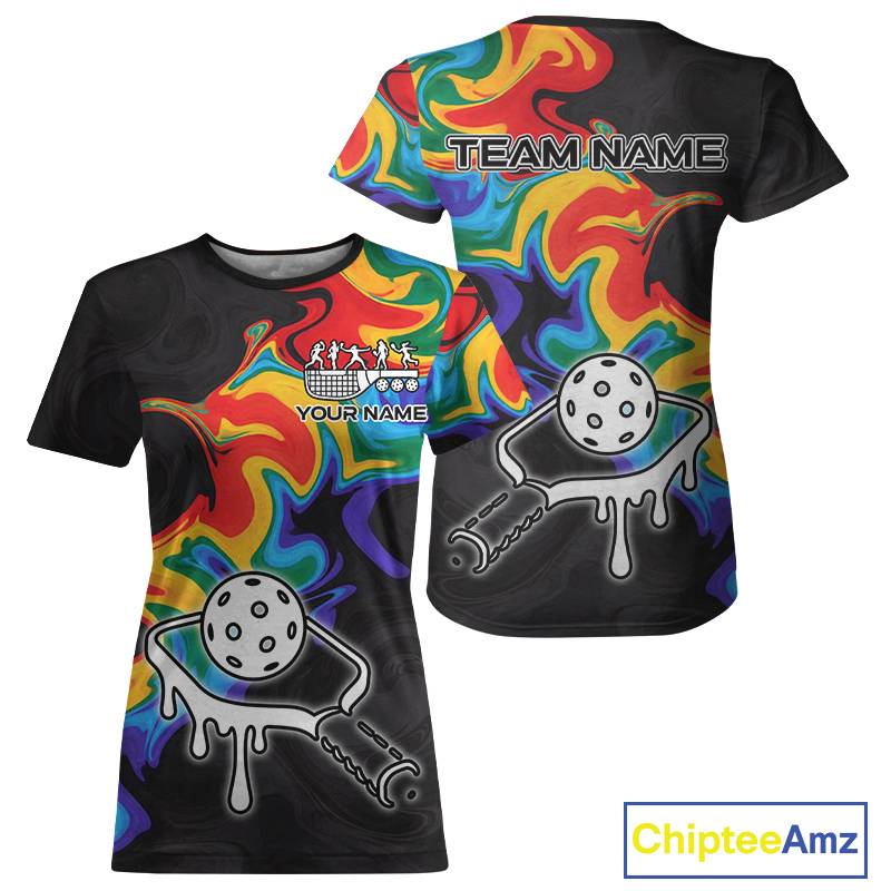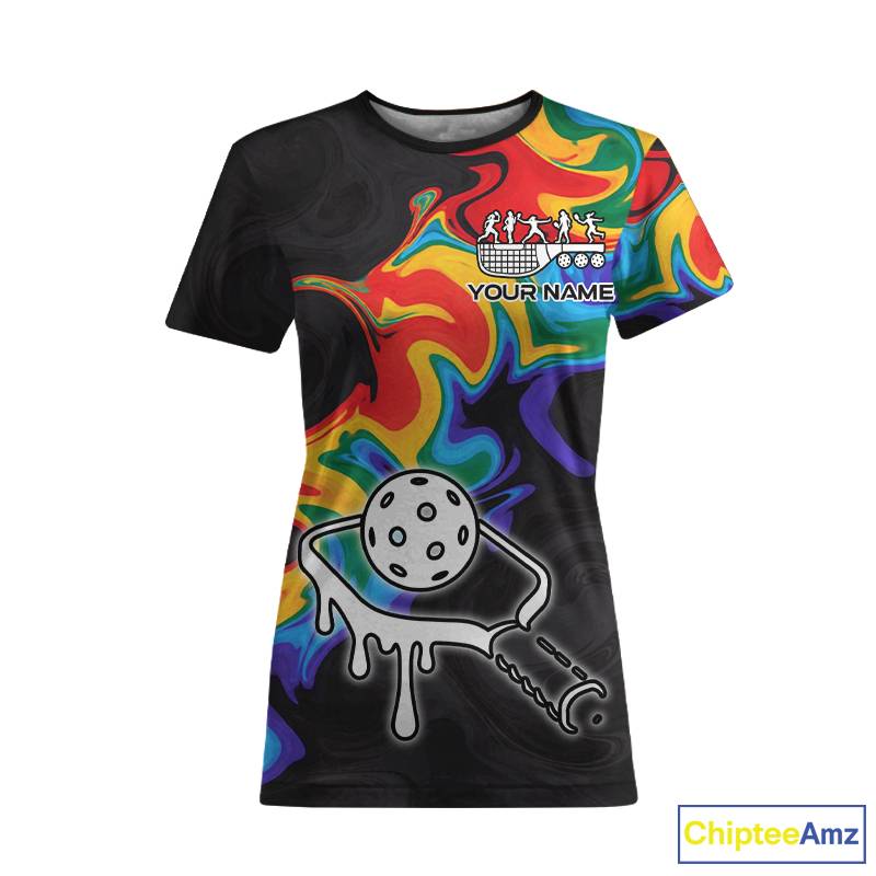 Colorful Splash Women Pickleball Ball & Paddle T-Shirt Personalized Pickleball Team Jerseys NYN2489