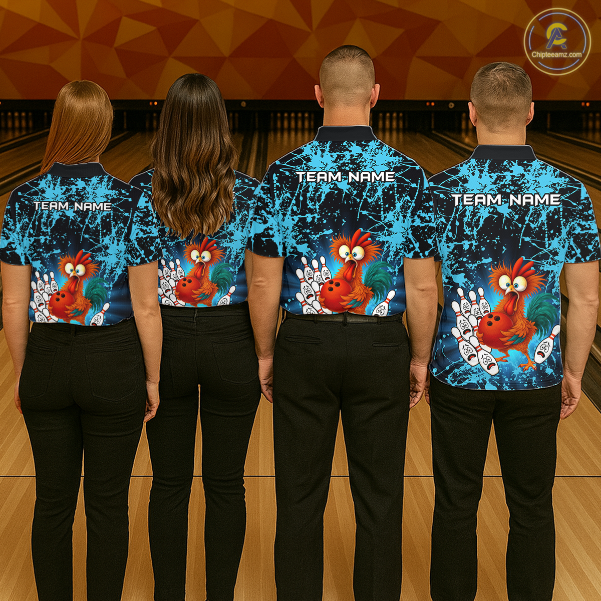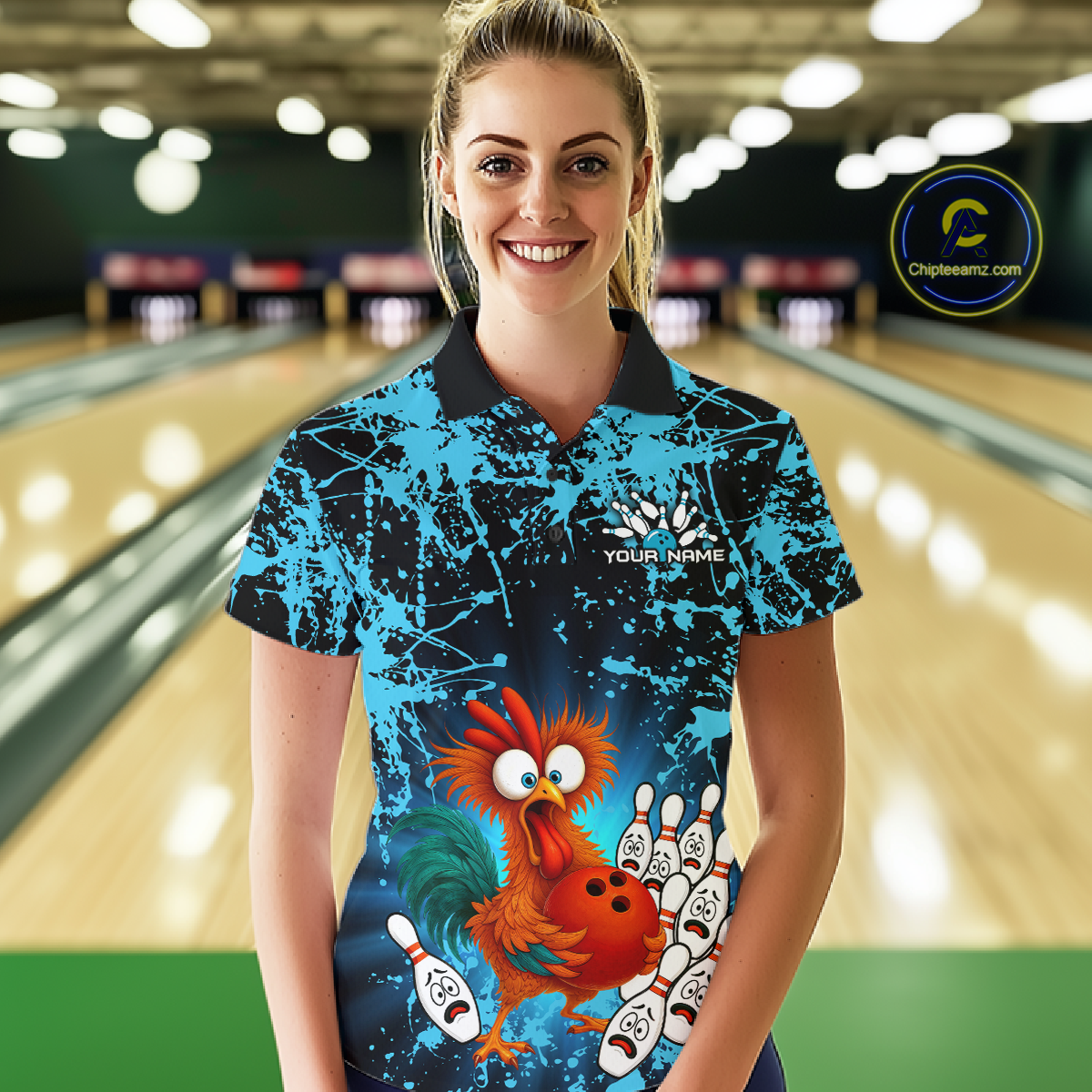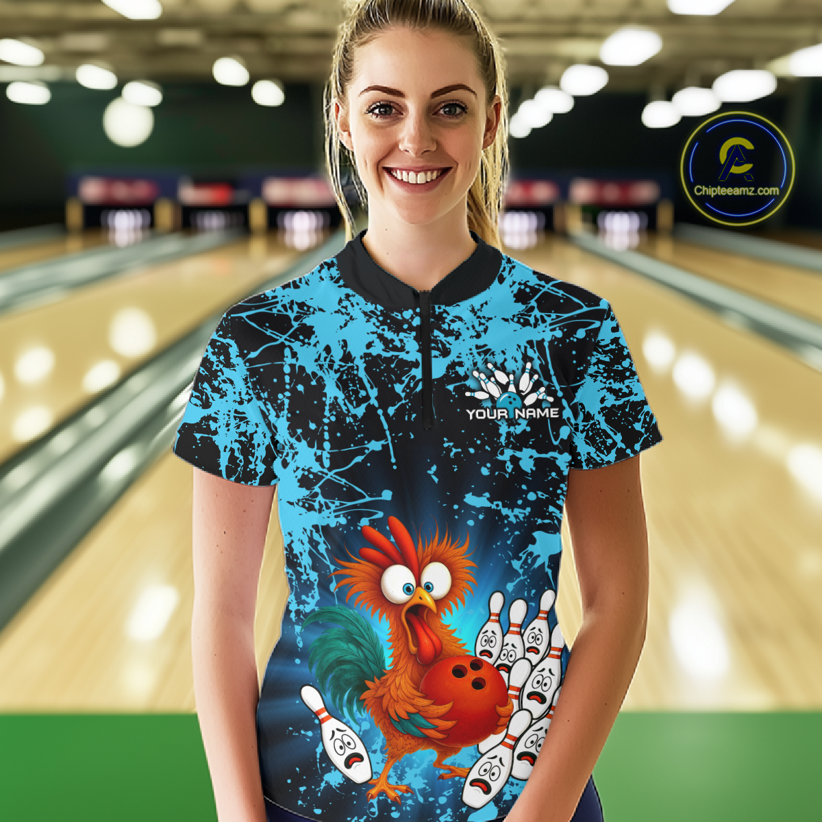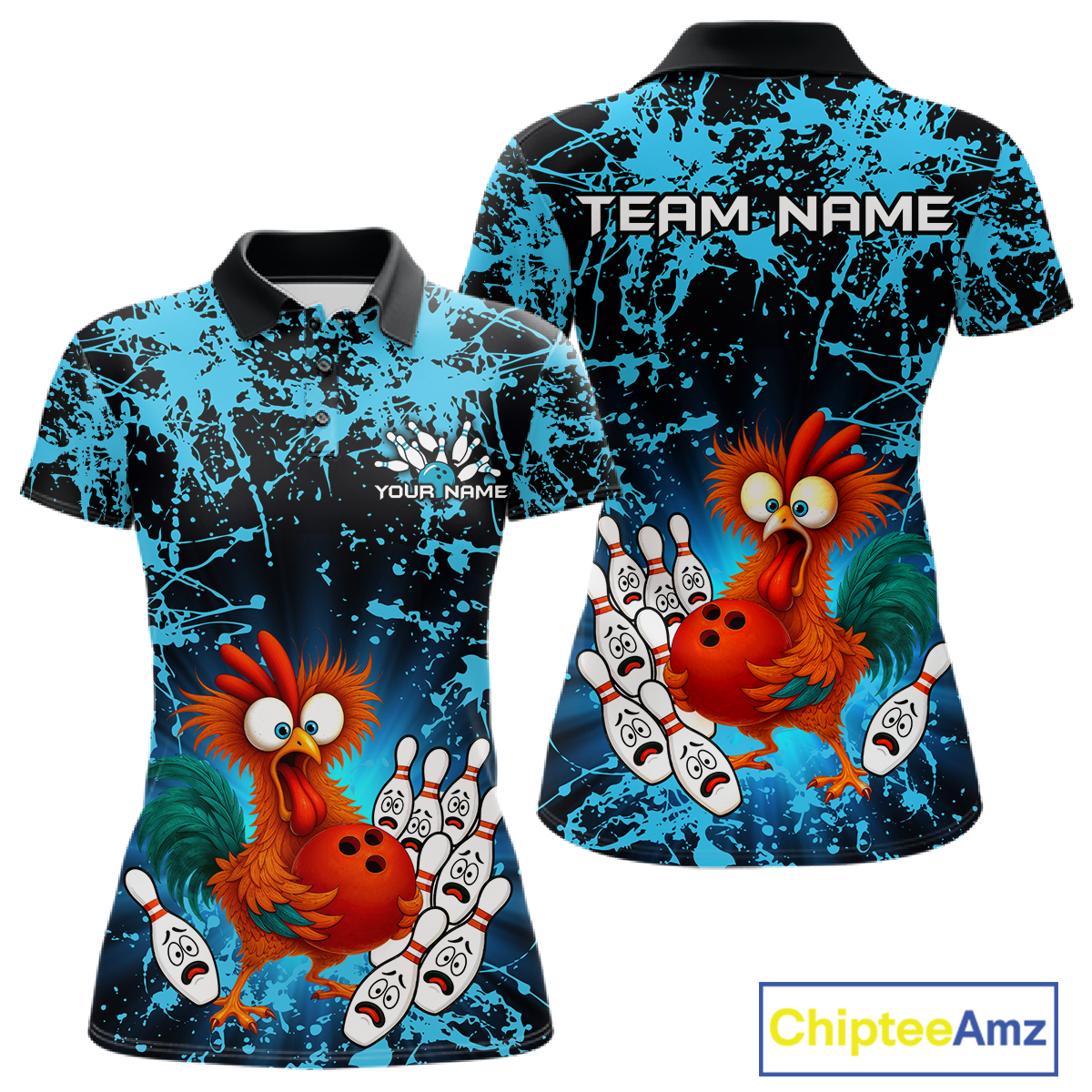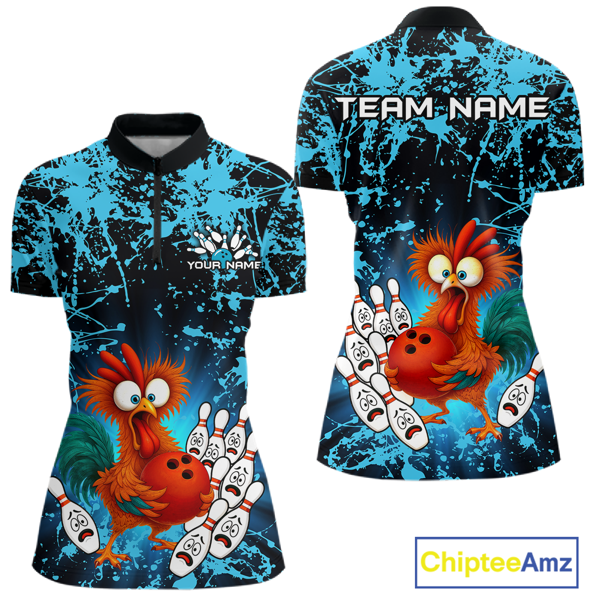 Turquoise Funny Chicken Bowling Jersey for Women Bowling League Bowling Team Shirts Polo & 1/4 Zip HN232