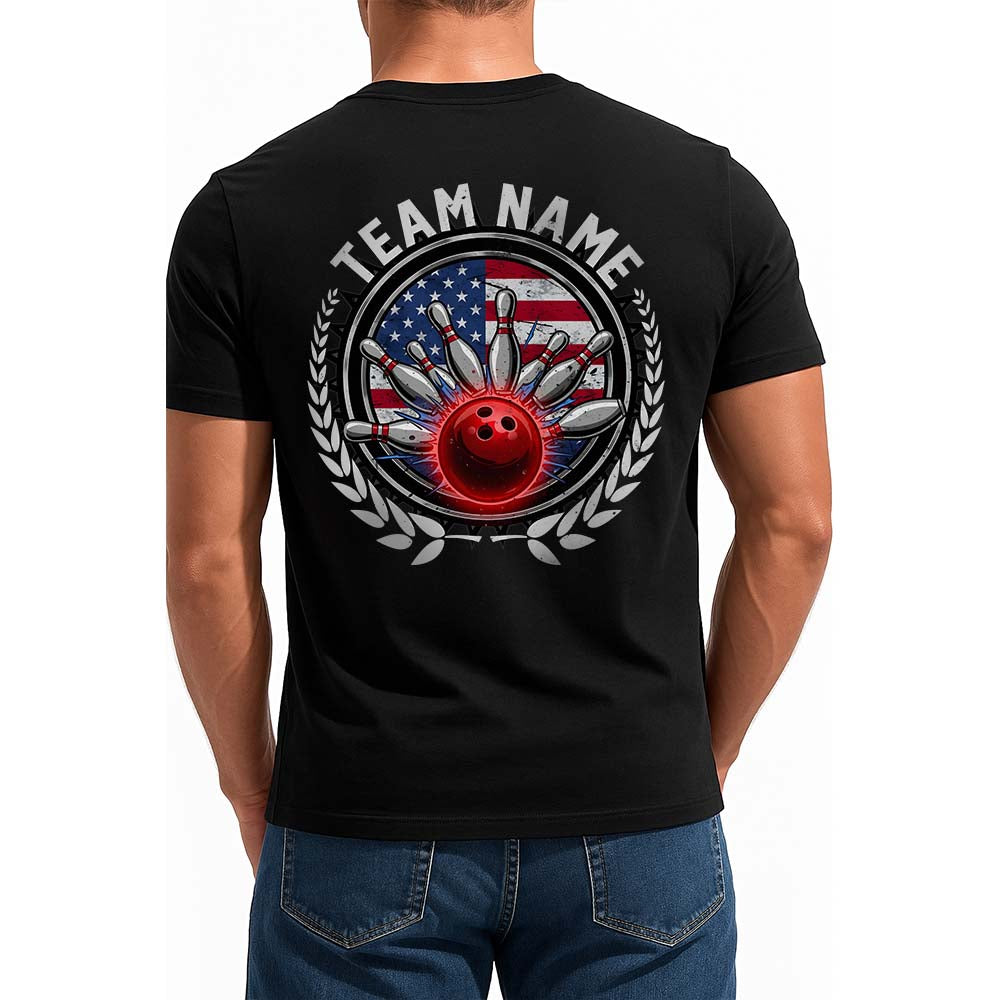 Custom Bowling T-Shirts For Men, American Flag Patriotic US Bowling Team Outfit IPHW9069